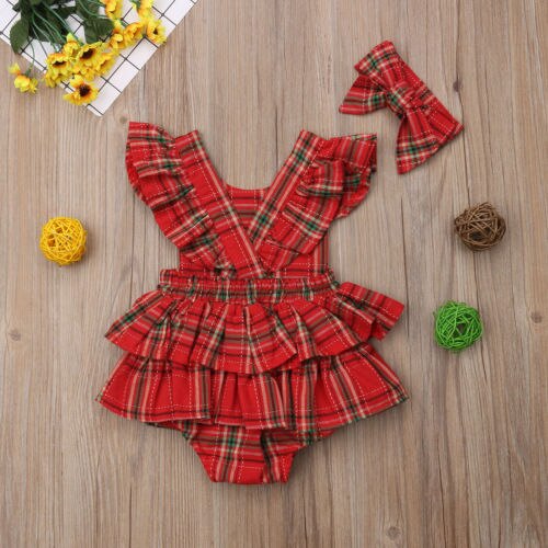 Baby / Toddler Girls Red Checked Romper (Age 6M-24M)