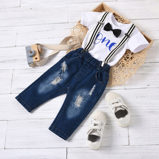 Baby Boys T-Shirt & Jeans With Braces Set (Age 9M-24M)