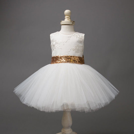 Girls Toddler White Sequin Belt Tulle Dress (Age 6M-10yrs)