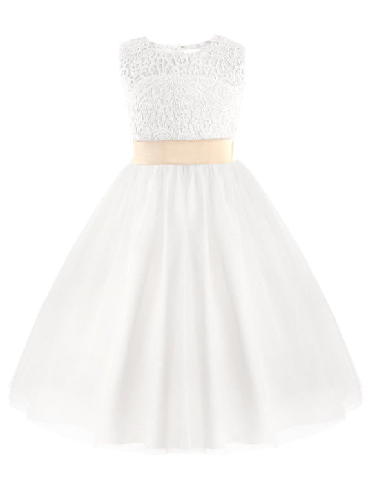 Girls White Tulle Dress & Bow Belt (Age 24M-16YRS)