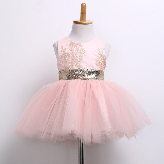 Girls Toddler Pink Sequin Belt Tulle Dress (Age 6M-10yrs)