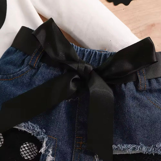 Girls Halloween Top & Denim Shorts Leggings Set (Age 12M-5YRS)