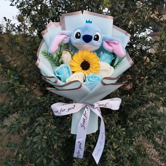 Lilo & Stitch Plush Bouquet – Sunflower & Rose Arrangement