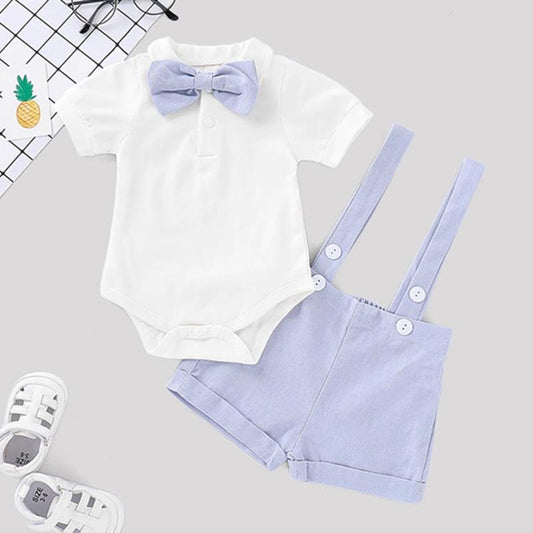 Boys Baby Toddler White Bow Tie Shirt & Blue Dungarees Set (Age 6m-4yrs)