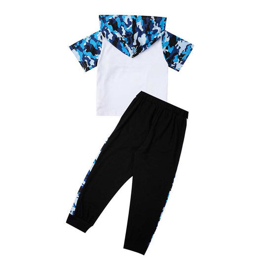 Boys Blue Camoflauge Hooded T-Shirt & Trousers Set (Age 24M-8YRS)