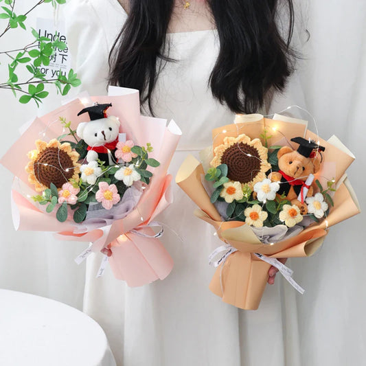 Plush Graduation Bear Crochet Artificial Flower Stuffed
