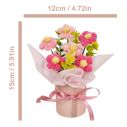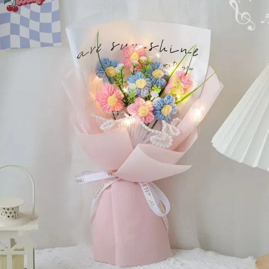 Hand Knitted Crochet Gift Flowers Bouquet With LED Lights