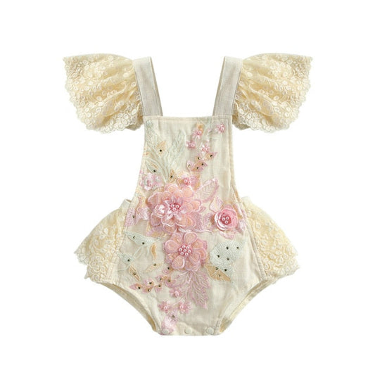 Baby Girls Beige Embroidered Romper (Age 6m-24m)