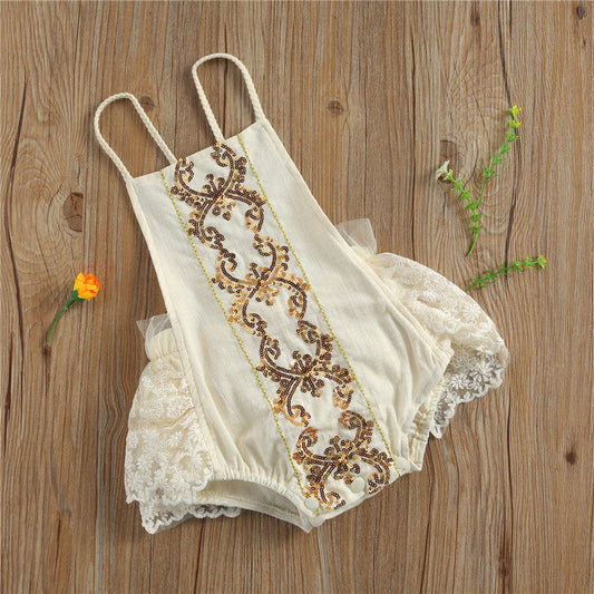 Baby Girls Beige Sequin Embroidered Romper (Age 6m-24m)