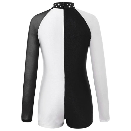 Girls Colorblock Rhinestone Long Sleeve Dance Unitard (Age 6-16 YRS)