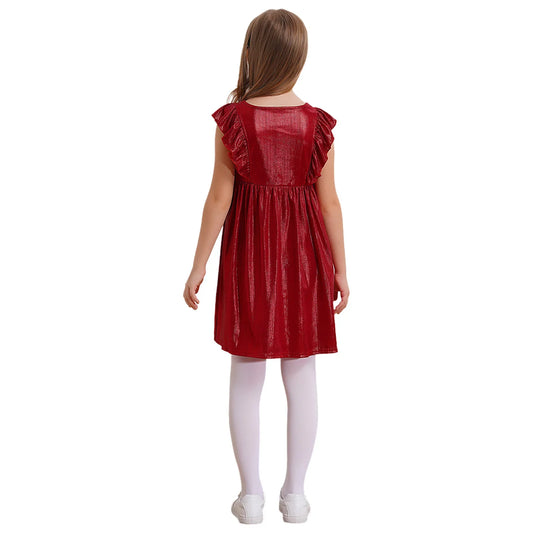 Girls Metallic Sleeveless Ruffles A-Line Dress (Age 24M-10YRS)