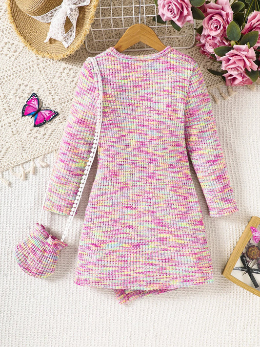 Girls Long Sleeved Knitted Dresses & Handbag (Age 4-7 YRS)