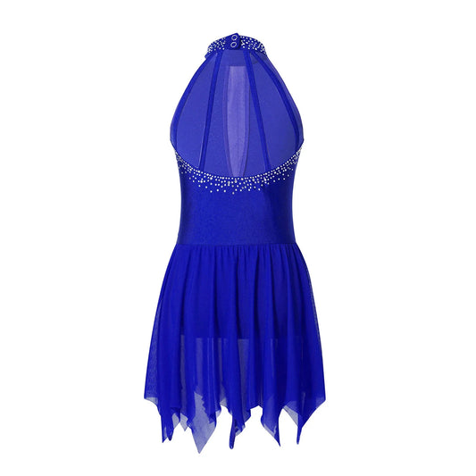 Girls Figure Skating Sleeveless Shiny Rhinestone Leotard Dress (Age 6-16 YRS)