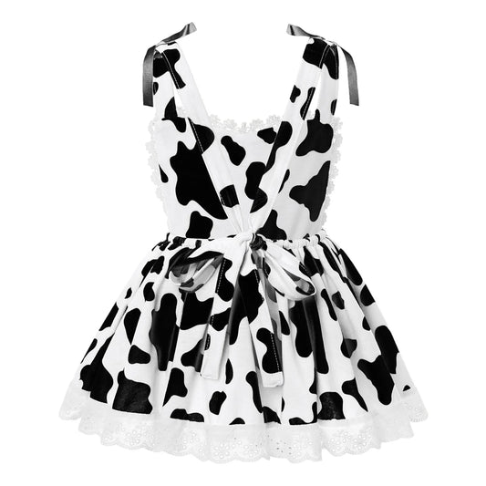 Girls Cow Print Sleeveless Lace Trim Dress (Age 12M-6 YRS)