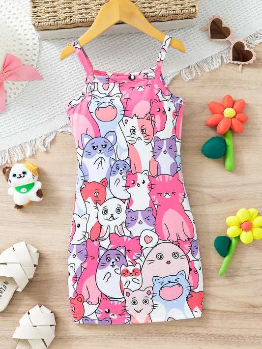 Girls Cat Print Dress (Age 3-7 YRS)