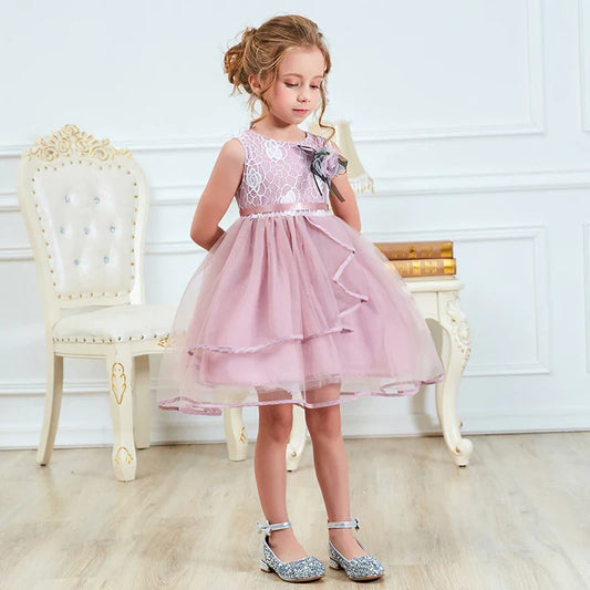 Girls Floral Lace Tulle Dress (Age 18M-6YRS)