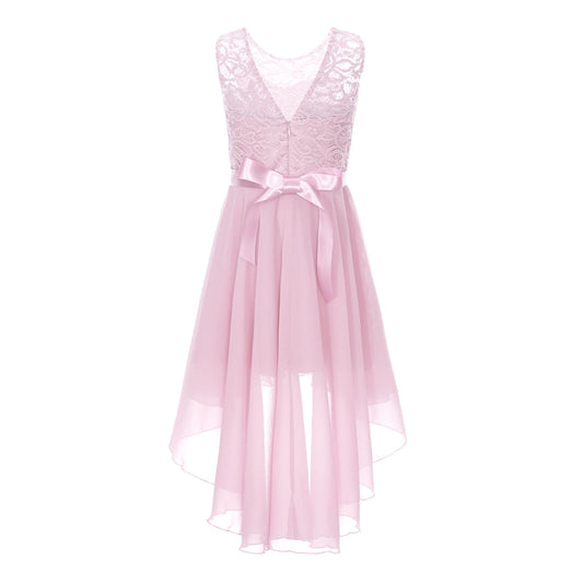 Girls Lace Chiffon Sequin Dipped Hem Dress (Age 6-14yrs)