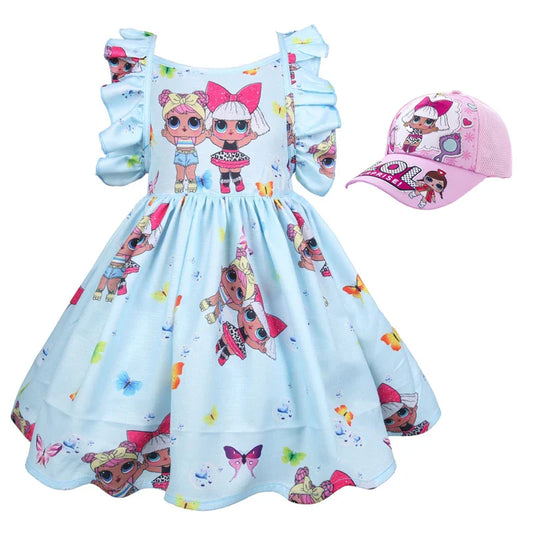 Girls LOL Surprise Print Dress & Cap (Age 3-7YRS)