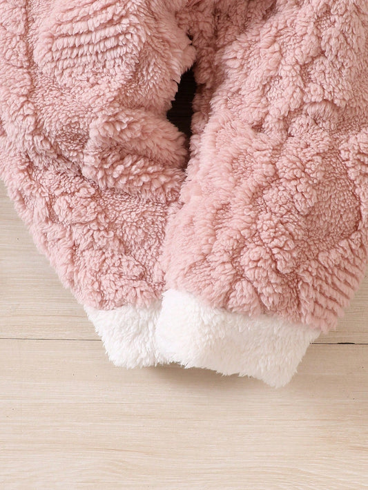 Baby Girl Teddy Jumpsuit – 3D Ear Design Hooded Zip-Up Romper | Newborn-24M
