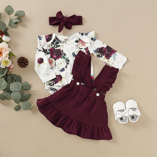 Baby Girls Body Suit Pinafore Dress & Headband Set (Age Newborn - 18M)