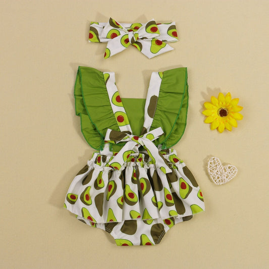 Baby Girls Avocado Romper & Headband Set (Age 6M-18M)