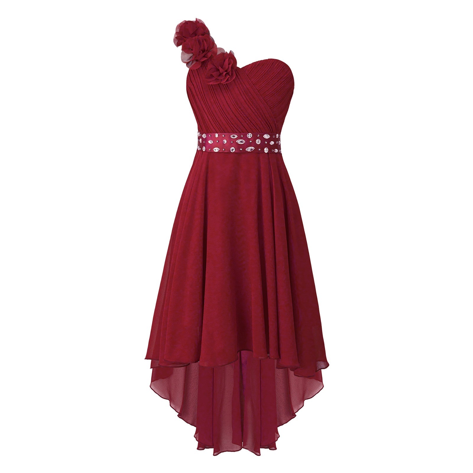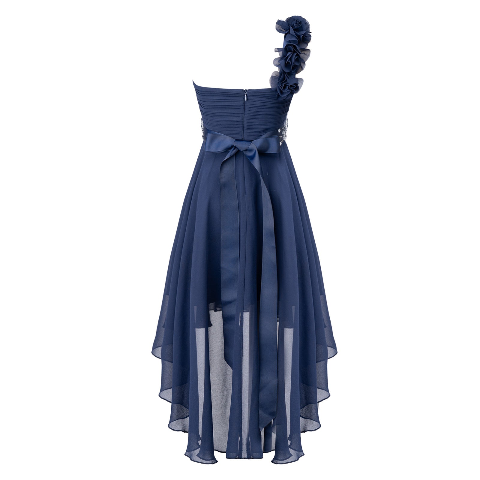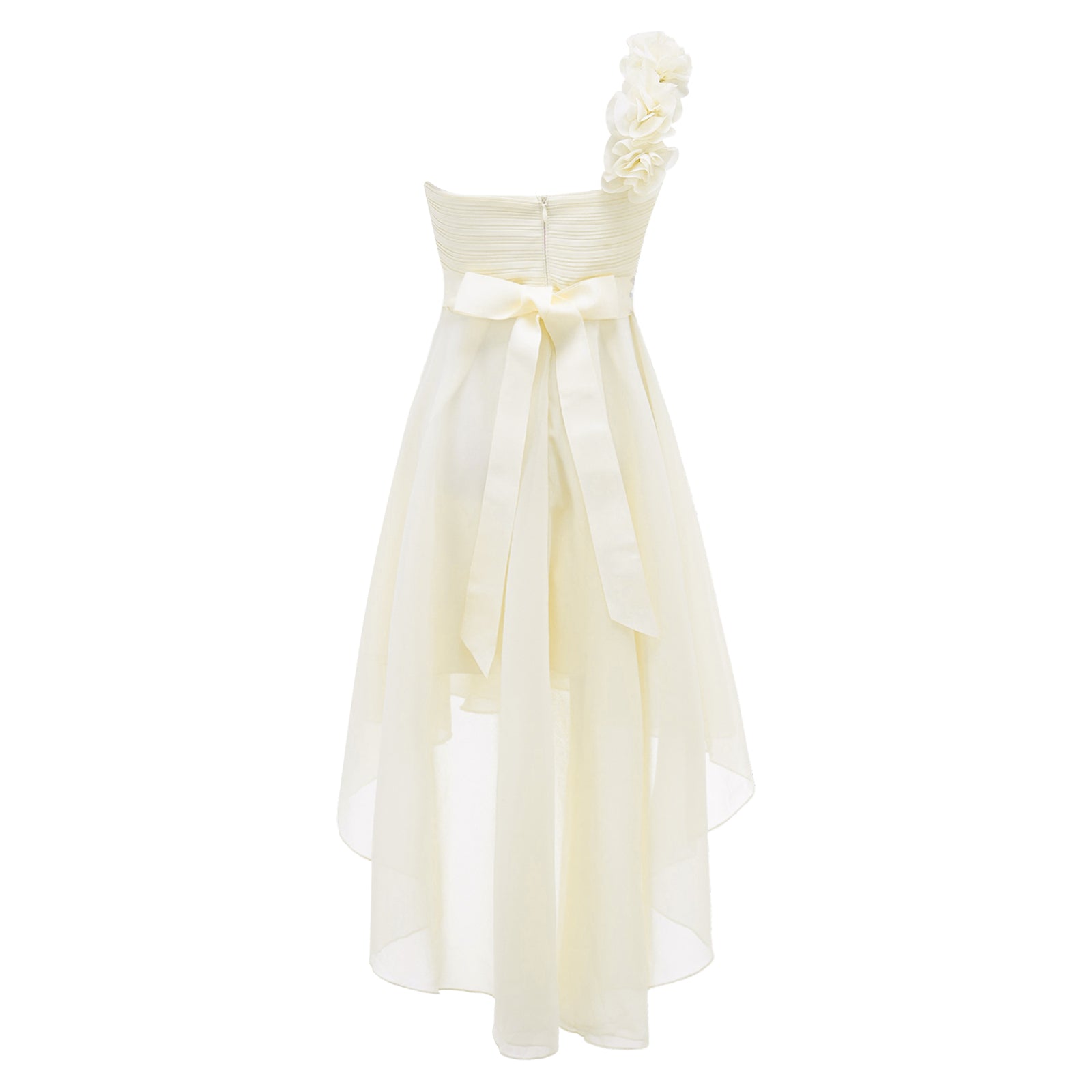 Girls Applique One-Shoulder Ruched Asymmetrical Hem Dress (Age 6-16YRS)