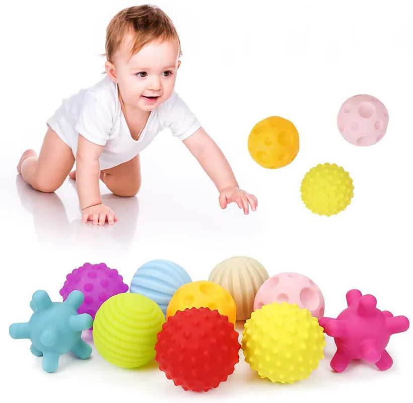 Boost your baby's sensory development with our 6 pack of textured balls! Each ball is uniquely designed with different textures and patterns to stimulate your little one's senses. Perfect for playtime and learning, these balls will keep your baby entertained and engaged. Get ready for some bouncing, rolling, and fun!