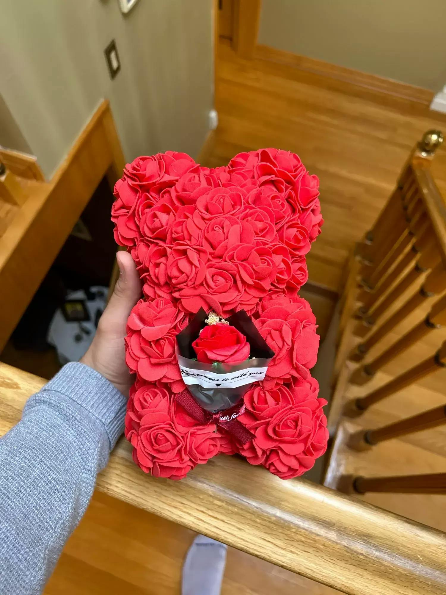 This sweet, one-of-a-kind Artificial Teddy Bear Rose Flower Gift - 25CM is the perfect way to show your love. Each teddy bear is made with artificial 3D latex roses, giving them a lifelike appearance and ensuring they last forever. Say 'I love you' in a unique and playful way with these adorable teddy bear rose gifts!