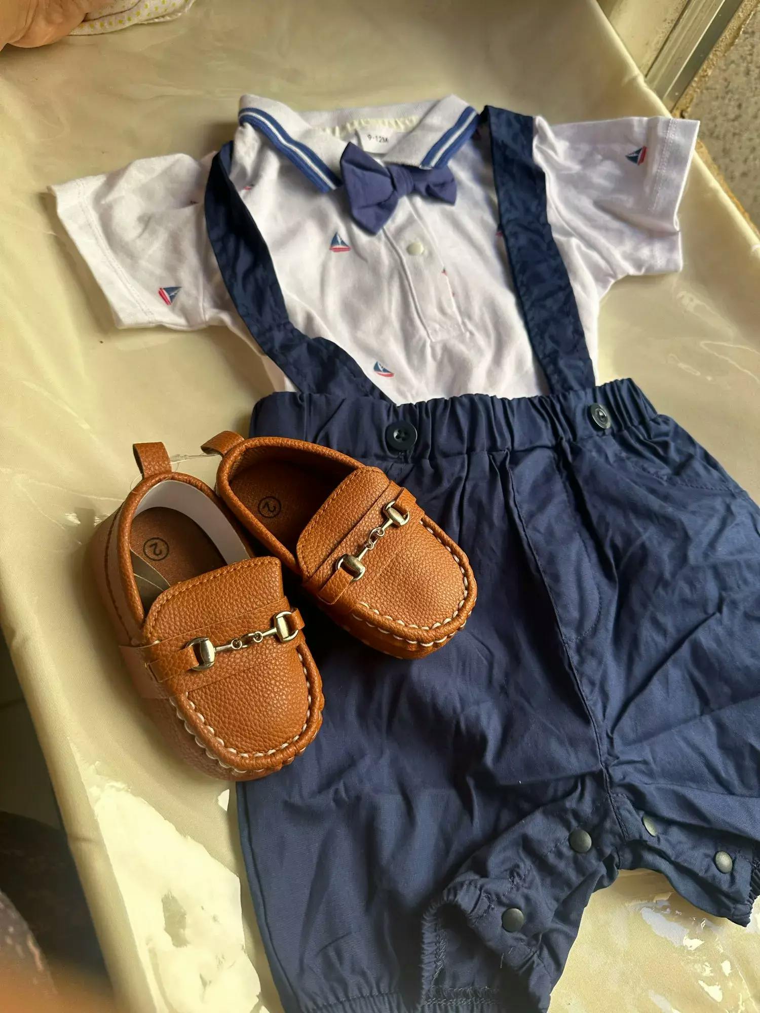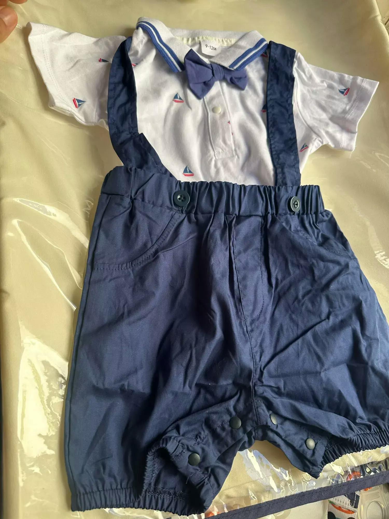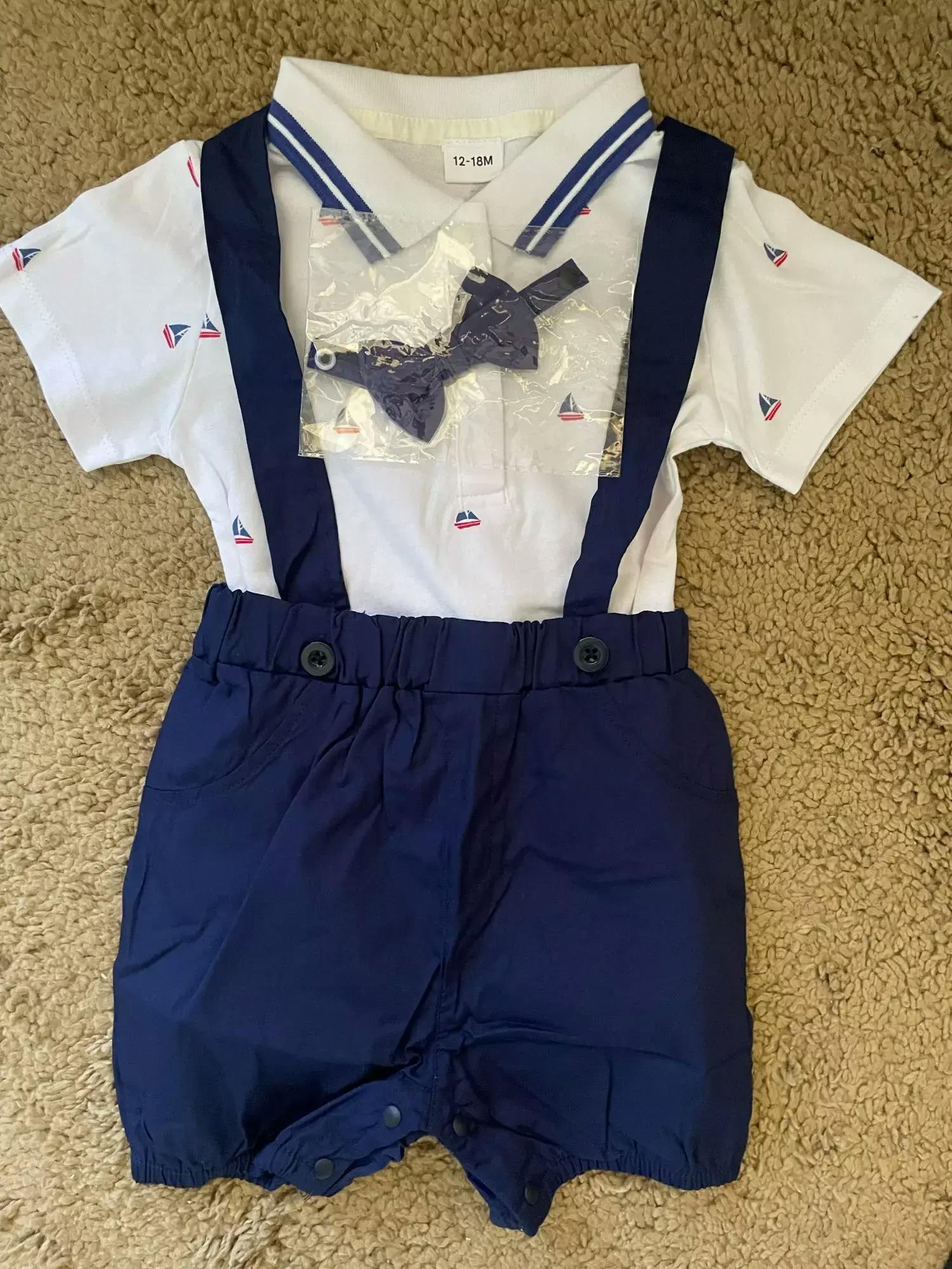 Dress your little one in style with our Baby Boy Dickie Bow Bodysuit & Shorts Set! Featuring a classic white bodysuit with a playful dickie bow design and navy shorts, this set is perfect for any occasion. Available in sizes newborn to 18 months. Get ready for some cuteness overload!