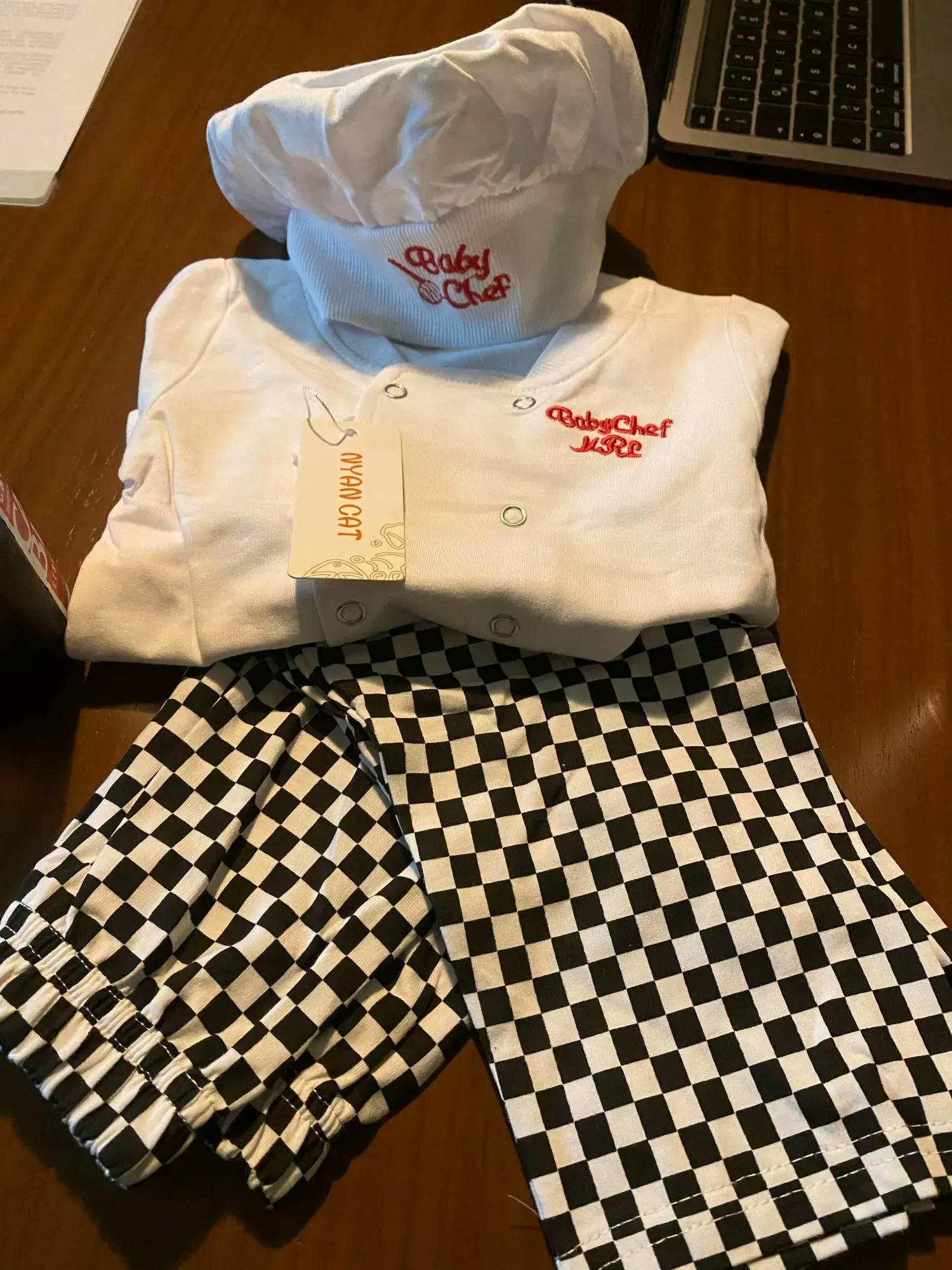 Introduce your little one to the culinary world with this adorable Baby Boys Chef Costume! Includes hat, T-shirt, and plaid pants in soft cotton. The long sleeve T-shirt features double-breasted button closures, while the pants offer both comfort and style. Perfect for special occasions or everyday wear.