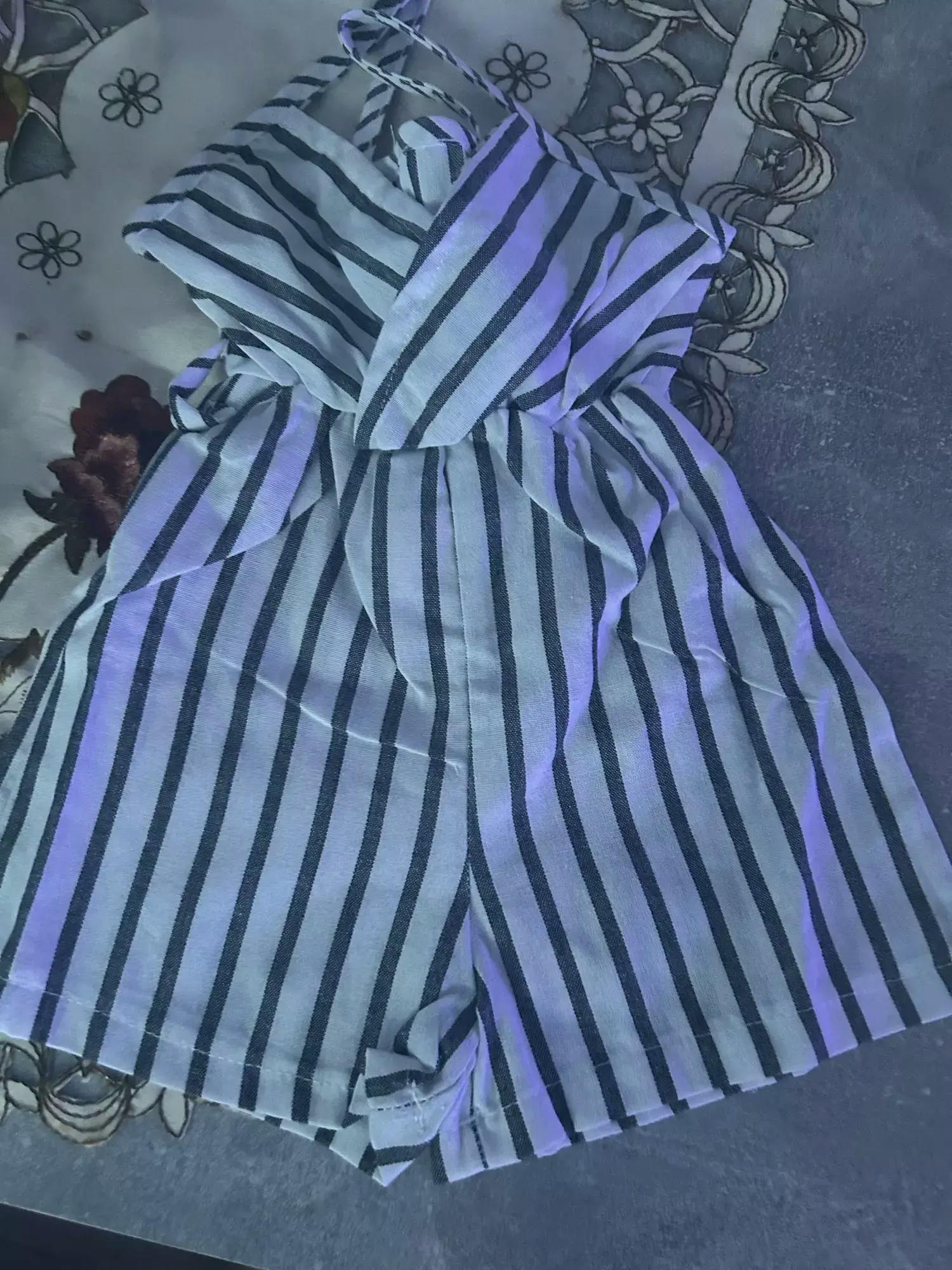 Baby Girls Black & White Stripe Romper (Age 6M-24M)