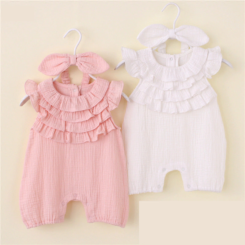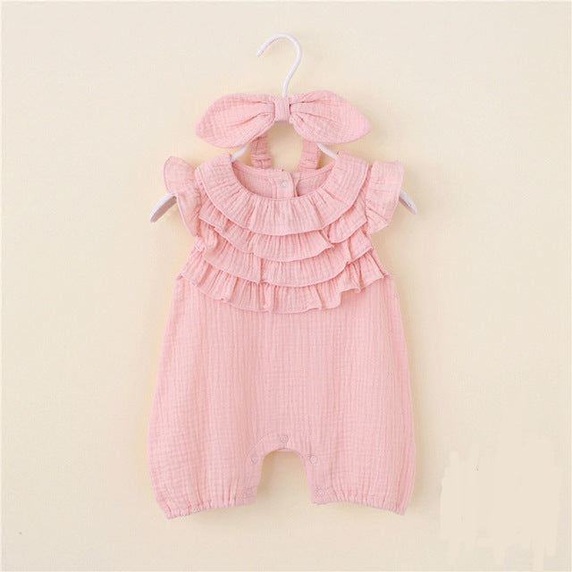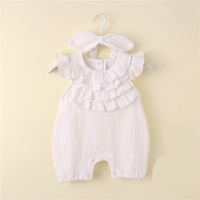 Get your baby girl ready for any occasion with this adorable ruffle romper and headband set. Perfect for newborns up to 12 months old, this set will keep your little one comfy and stylish all day (and night!) long. With its cute ruffles and matching headband, she'll be the cutest baby in town!