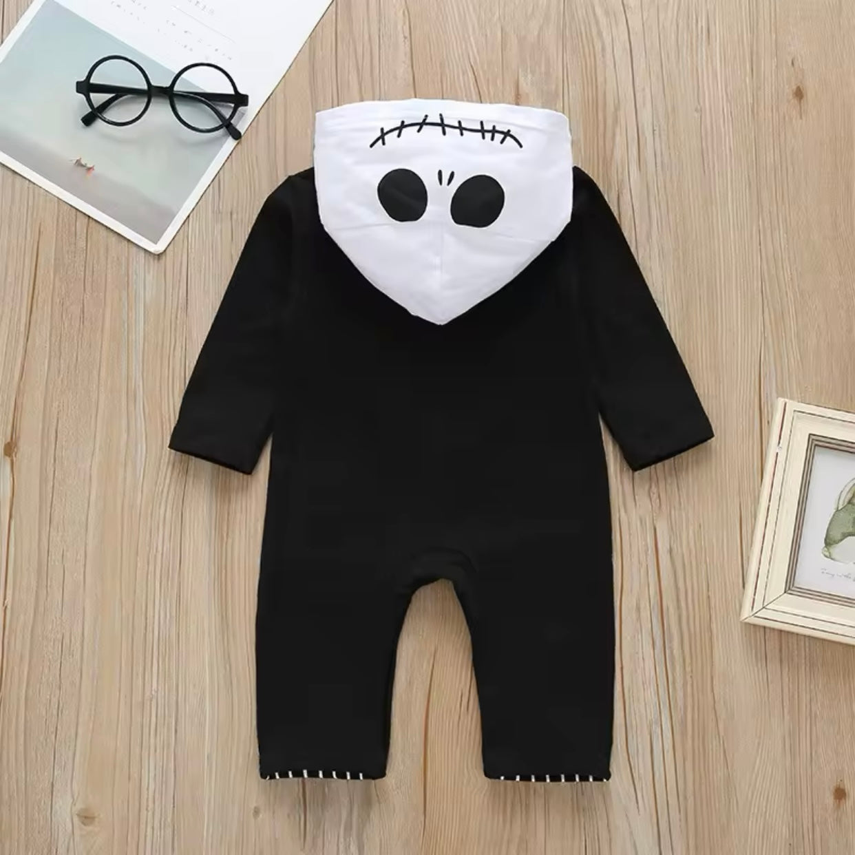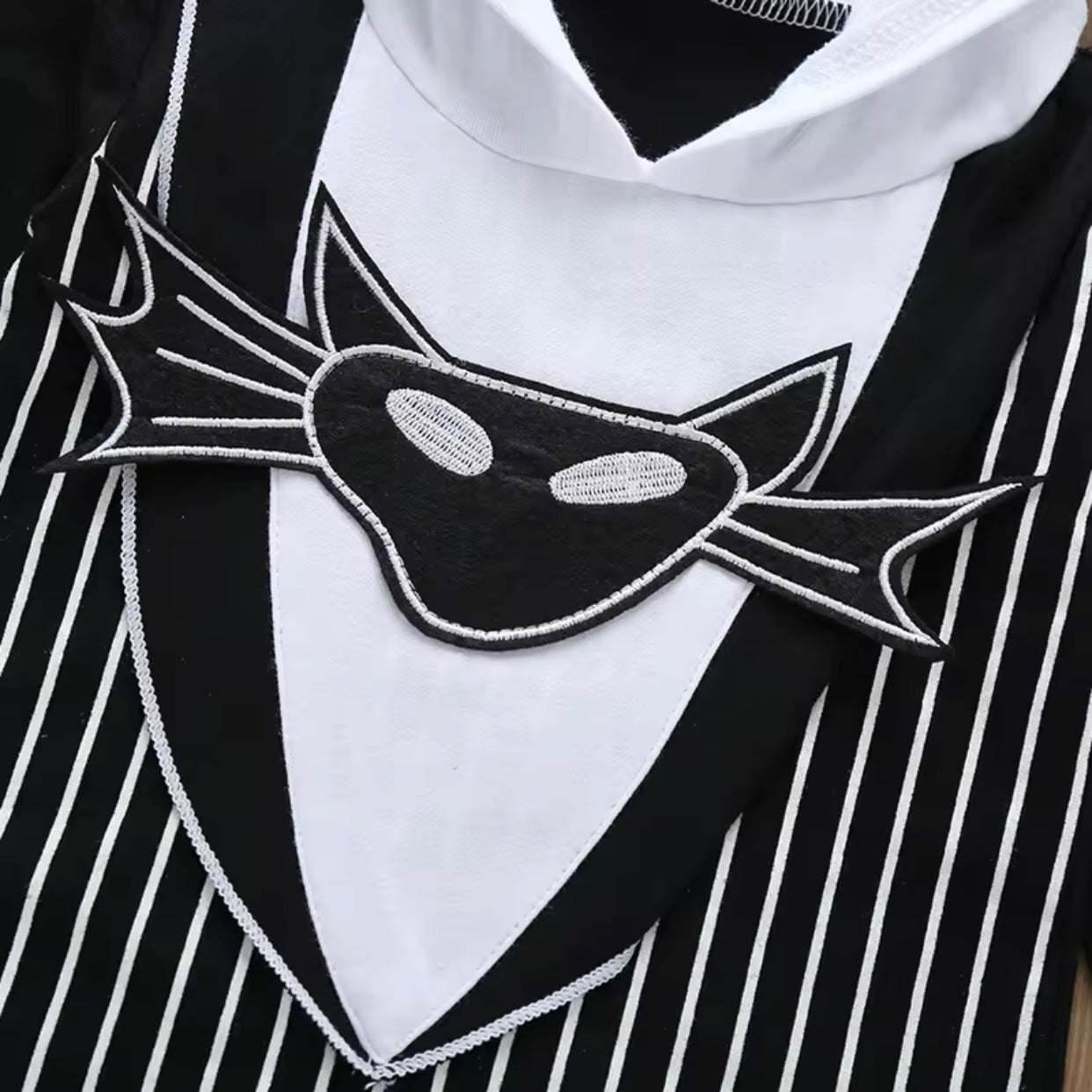 Transform your little one into a spooky yet adorable character with our Baby Nightmare Romper Mask & Plush Toy Halloween Costume! This set includes a Jack Skellington Romper, face mask, and a plush toy. Made with high-quality materials like polyester, cotton, and milk micro fibre, this costume is sure to provide comfort and fun for your baby (and hopefully some laughs for you!). Perfect for ages 6 months to 24 months.