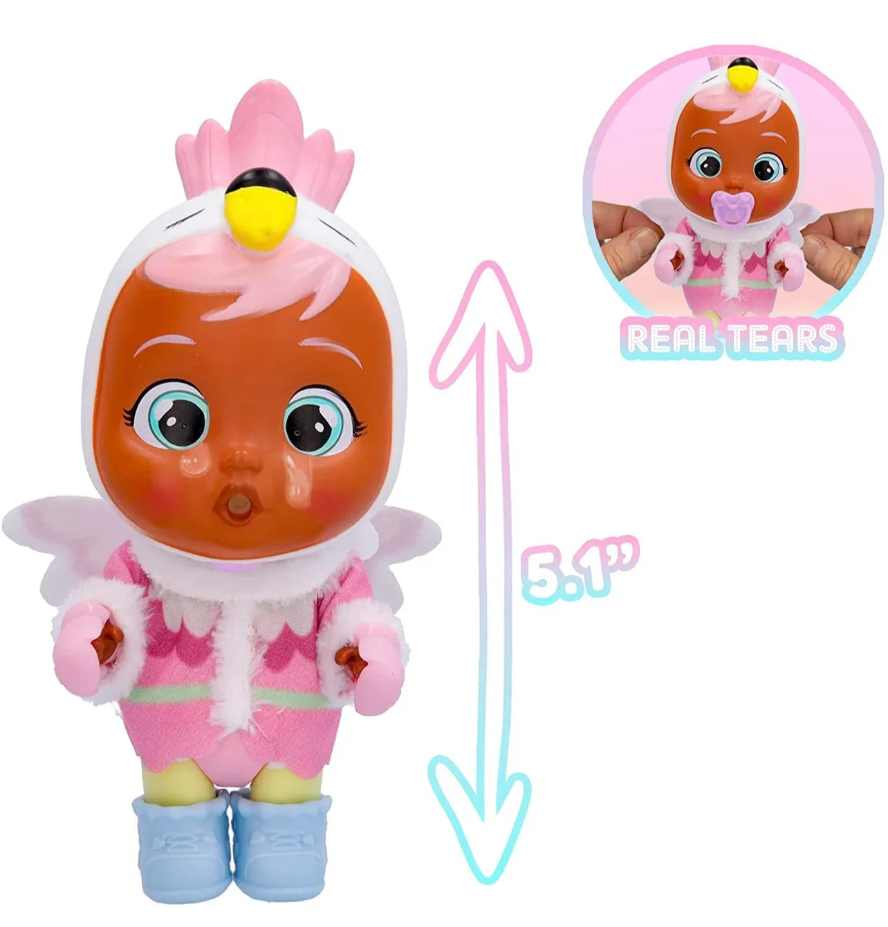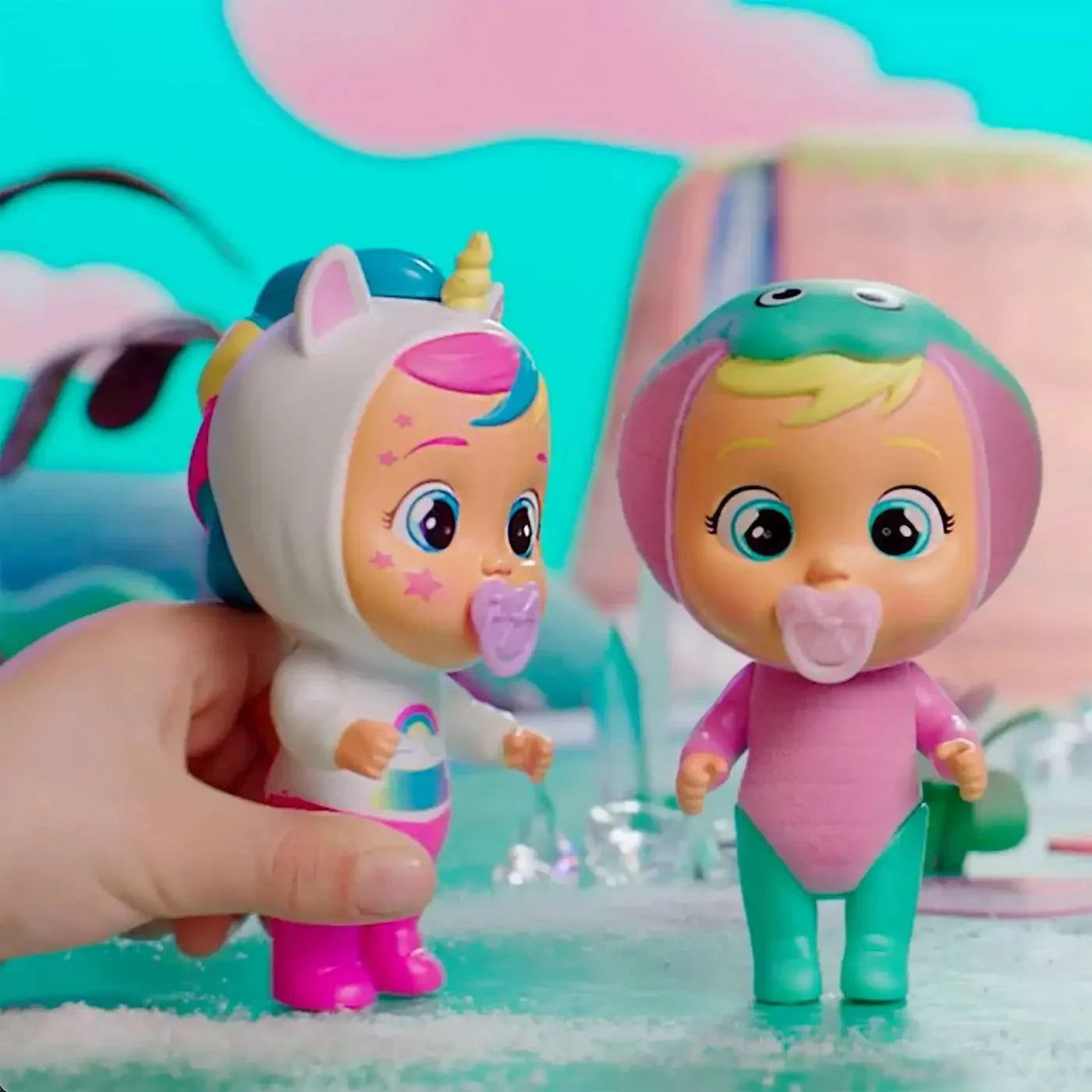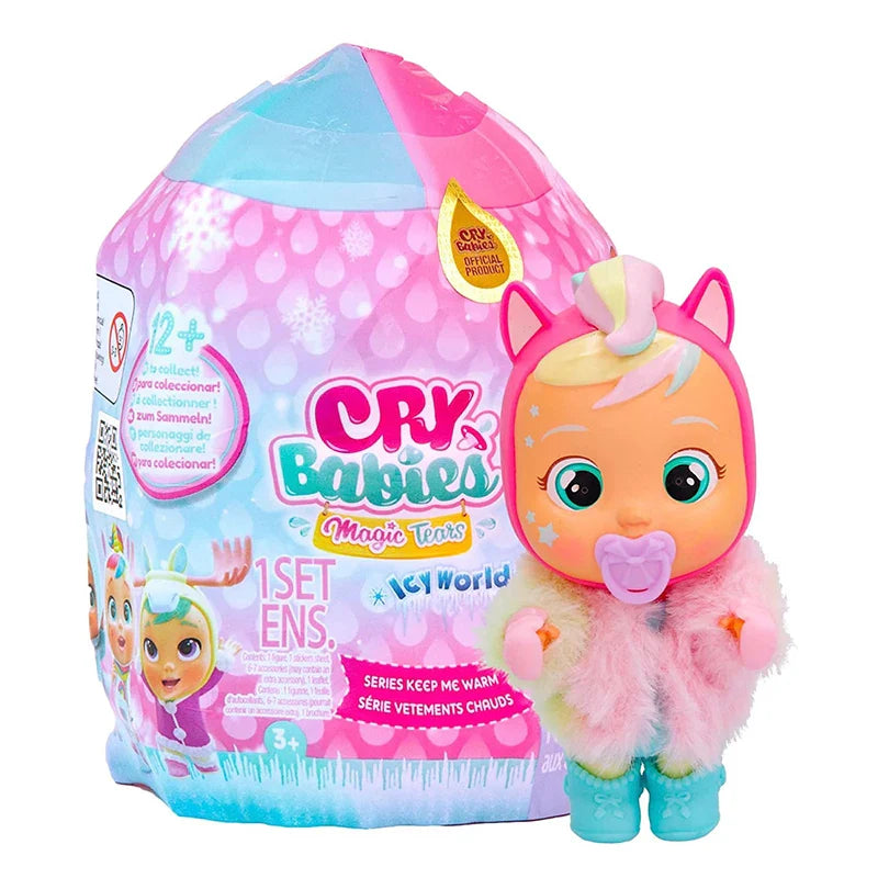The mini weeping babies' home, known as the wardrobe capsule, transforms into a frozen wardrobe within the Icy World. Each capsule hides one of 14 characters, with 2 of them rare and featuring luxurious velvet fabric finishes. Along with the crying babies, there are 7 accessories to enhance imaginative play and create endless stories. Each doll is dressed in fabric clothes to keep them warm. But if they start feeling chilly, give them a drink with the magic bottle and watch as they cry real tears when their bellies are squeezed. Combining fun and imagination, Cry Babies Magic Tears is more than just a toy - it helps stimulate fine motor skills, emotional and social abilities in children ages 3 and up. Unleash the surprises and bring home this perfect gift for both girls and boys.