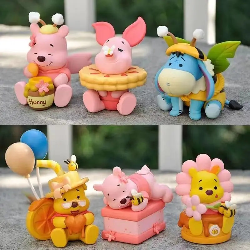 • Pooh with Hunny Pot – classic charm with a flower-topped pot