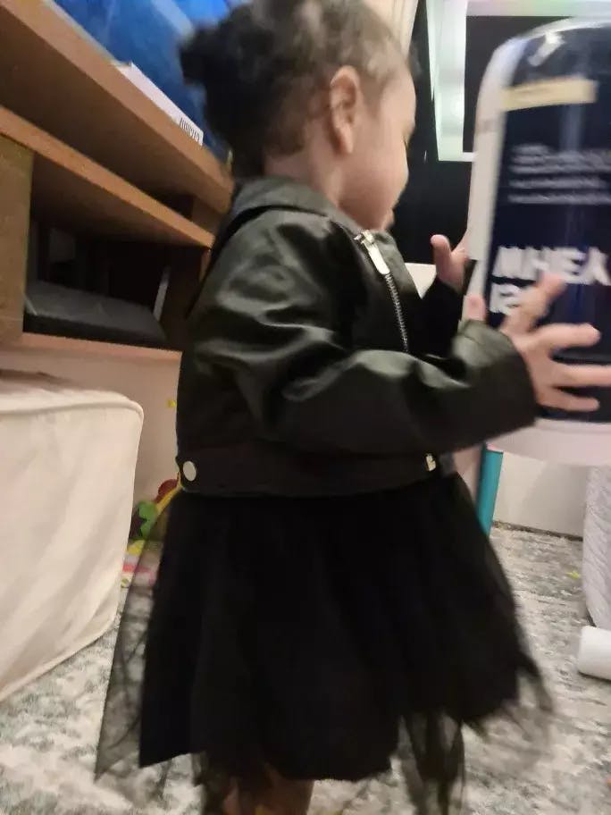 Rock on with this Girls Black PU Leather Jacket & Tutu Tulle Skirt Set! Perfect for ages 9 months to 5 years, this edgy outfit will have your little one feeling like a cool rockstar. The faux leather jacket adds a touch of attitude, while the tulle skirt brings a girly twist. Let your little one stand out in style!