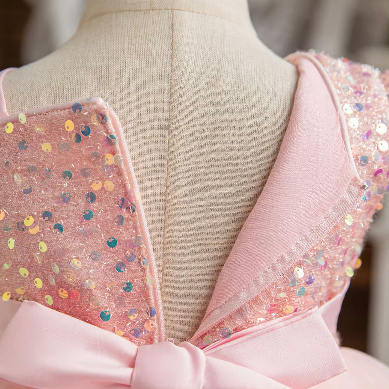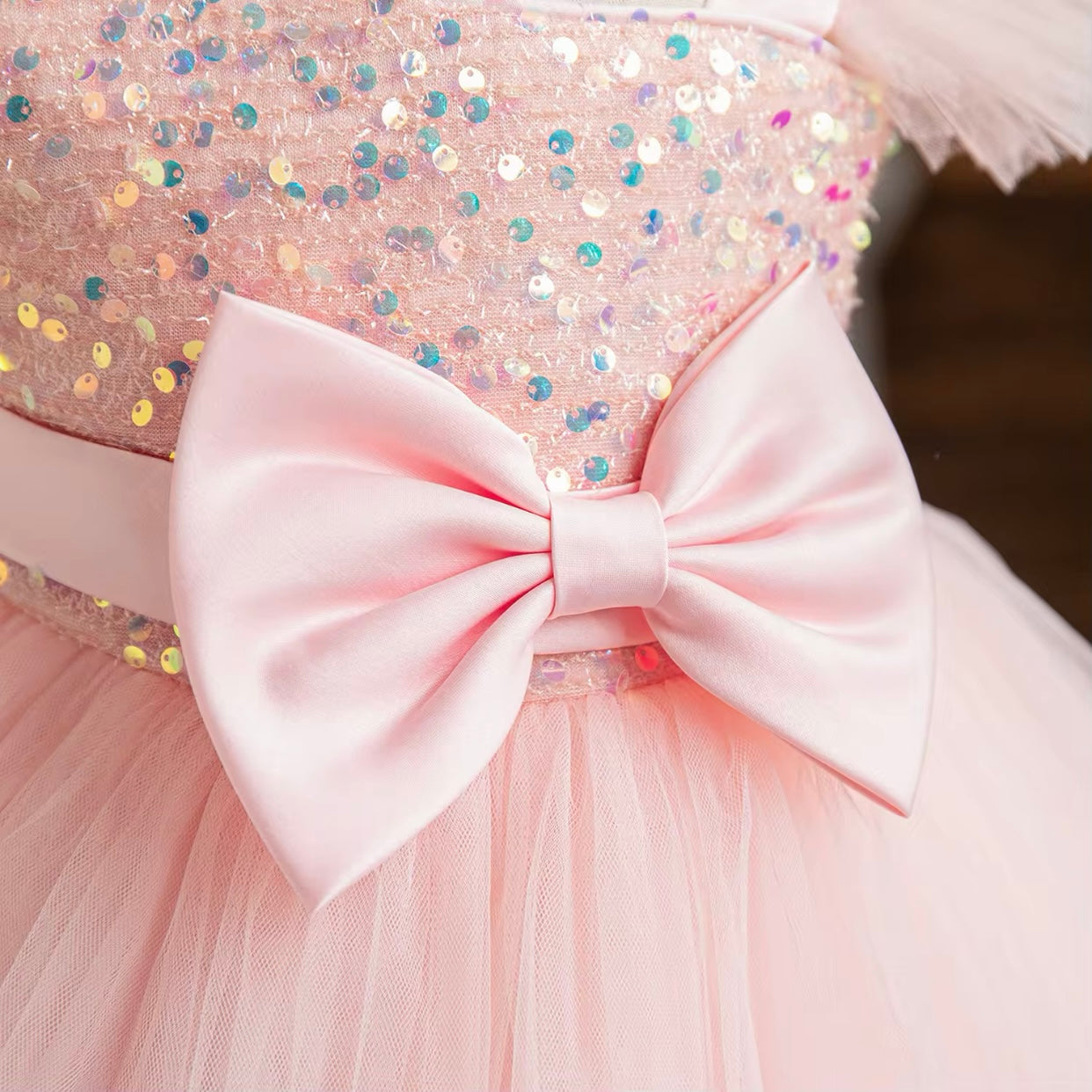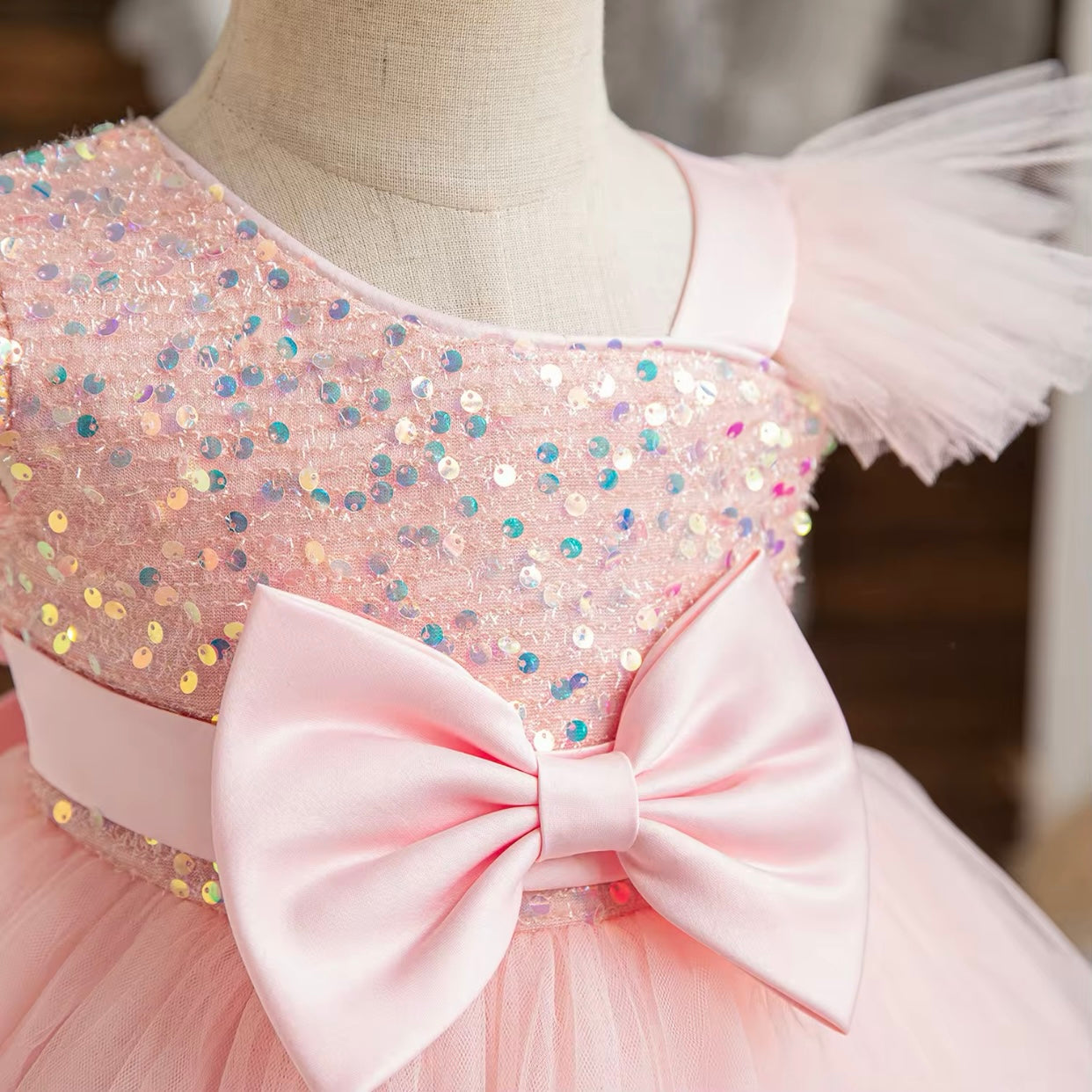 Girls Bow Sequin Tulle Dress (Age 9M-5YRS)