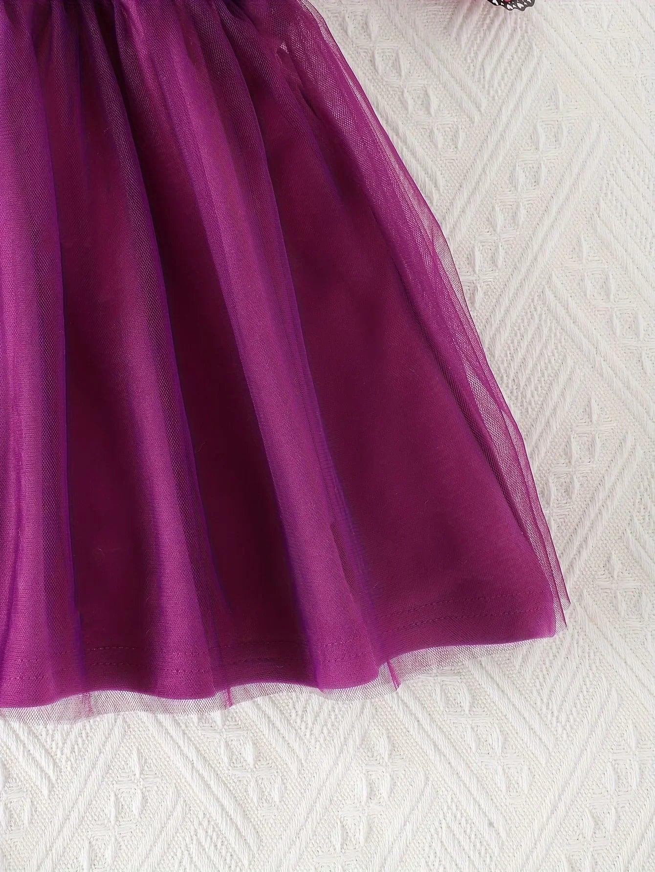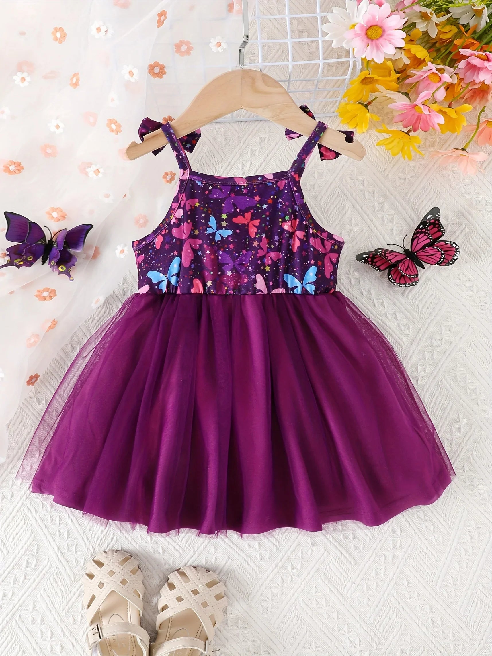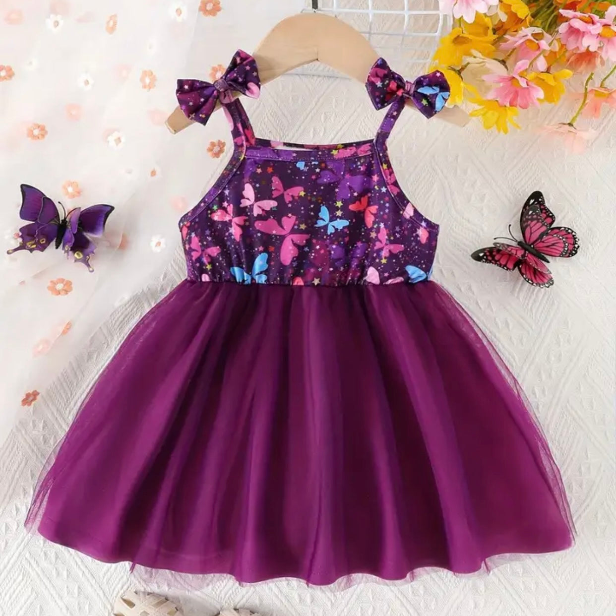 Girls Purple Butterfly Print Tulle Dress (Age 6M - 3 Yrs)