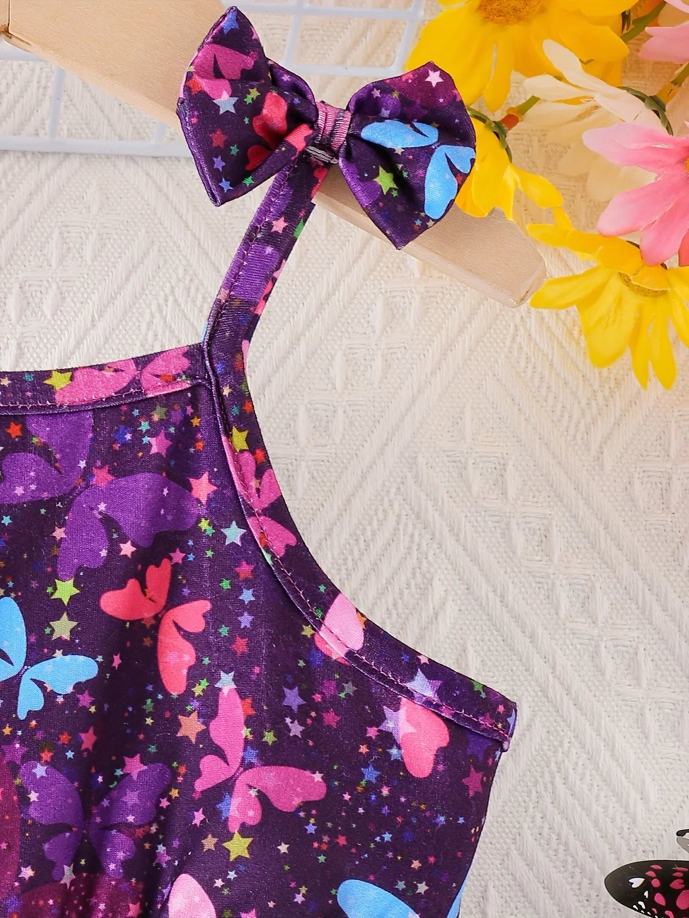 Flutter and twirl in this Girls Purple Butterfly Print Tulle Dress! Available for ages 6 months to 3 years, your little one will love the whimsical butterfly print and the flowy tulle skirt. Perfect for playtime or special occasions, this dress will make your child feel like a true butterfly (without the cocoon stage).