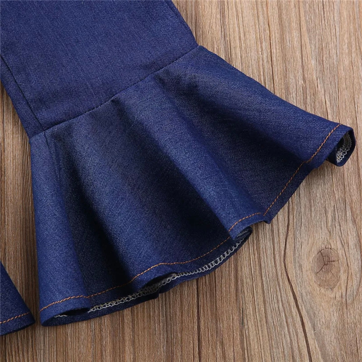 Girls Yellow Top & Bell Bottom Jeans Set (Age 24M-5YRS)