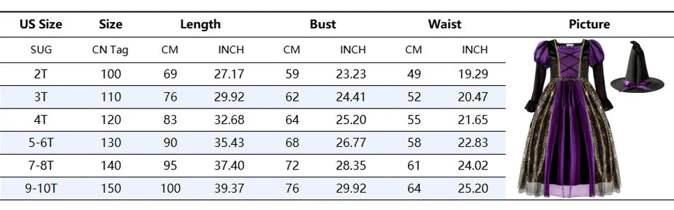 Transform your little girl into a magical witch with our Girls Witch Dress & Accessories Costume! Featuring a black dress with bat, ghost, and devil Queen accents, this costume is perfect for Halloween, parties, and more. Made with high-quality fabrics and includes rich accessories, this costume is sure to make your child's princess dreams come true. Suitable for ages 2-10 and comes in a range of sizes. Get it now and make your child's day magical!