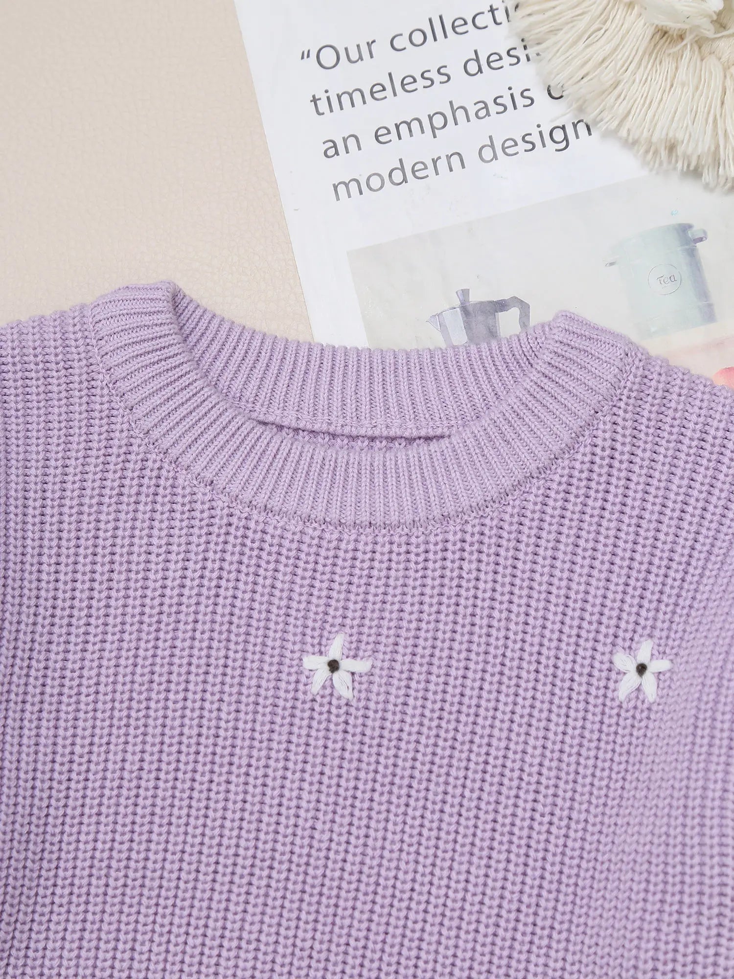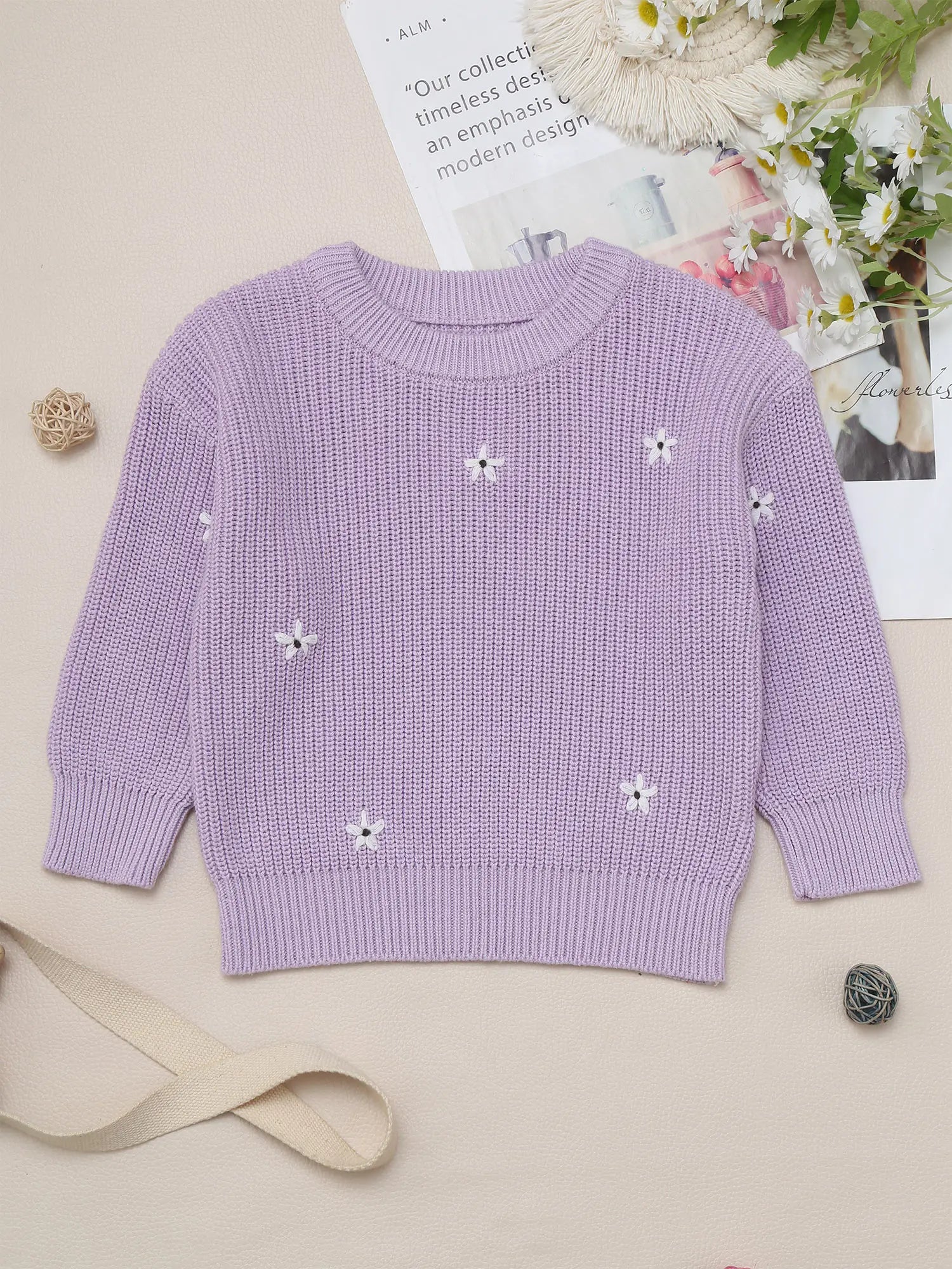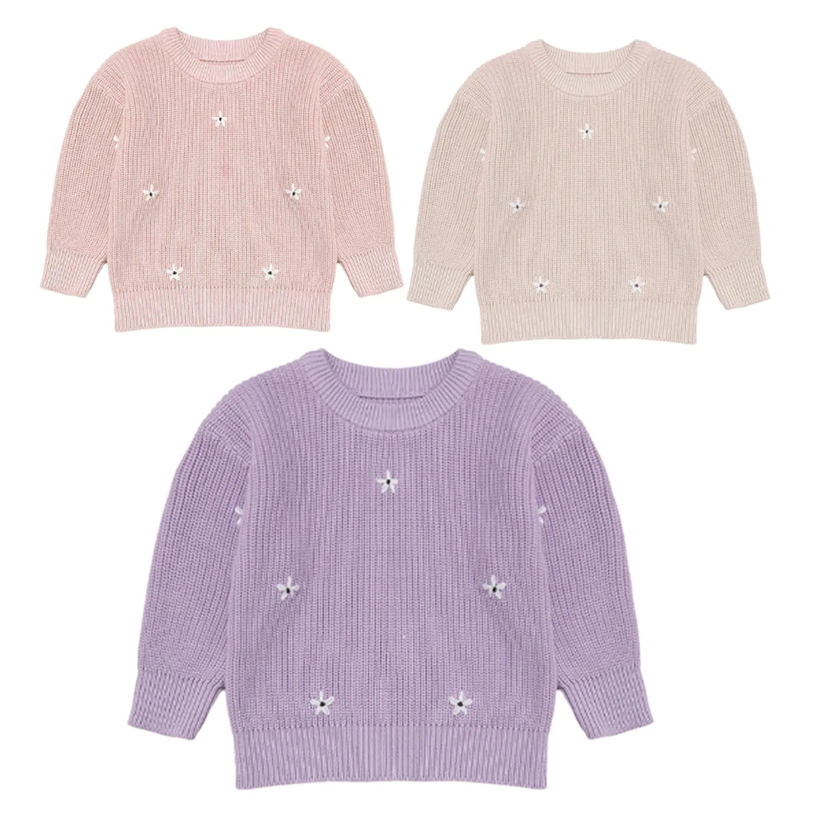 This comfortable and stretchy knit sweater for girls is made of cotton fabric, ensuring it is skin-friendly and free of shrinkage and wrinkles. It features a crewneck, long sleeves, and elastic designs at the neck, cuffs, and bottom for a perfect fit. The solid color sweater is adorned with beautiful flower embroidery, making it a fashionable choice and keeping girls warm and cozy in cold seasons. Pair it with a dress, skirt, pleated skirt, jeans, jacket, or outerwear for a warm and stylish look. Ideal for daily wear, casual occasions, school, going out, outdoor activities, holidays, and travel during fall and winter.
