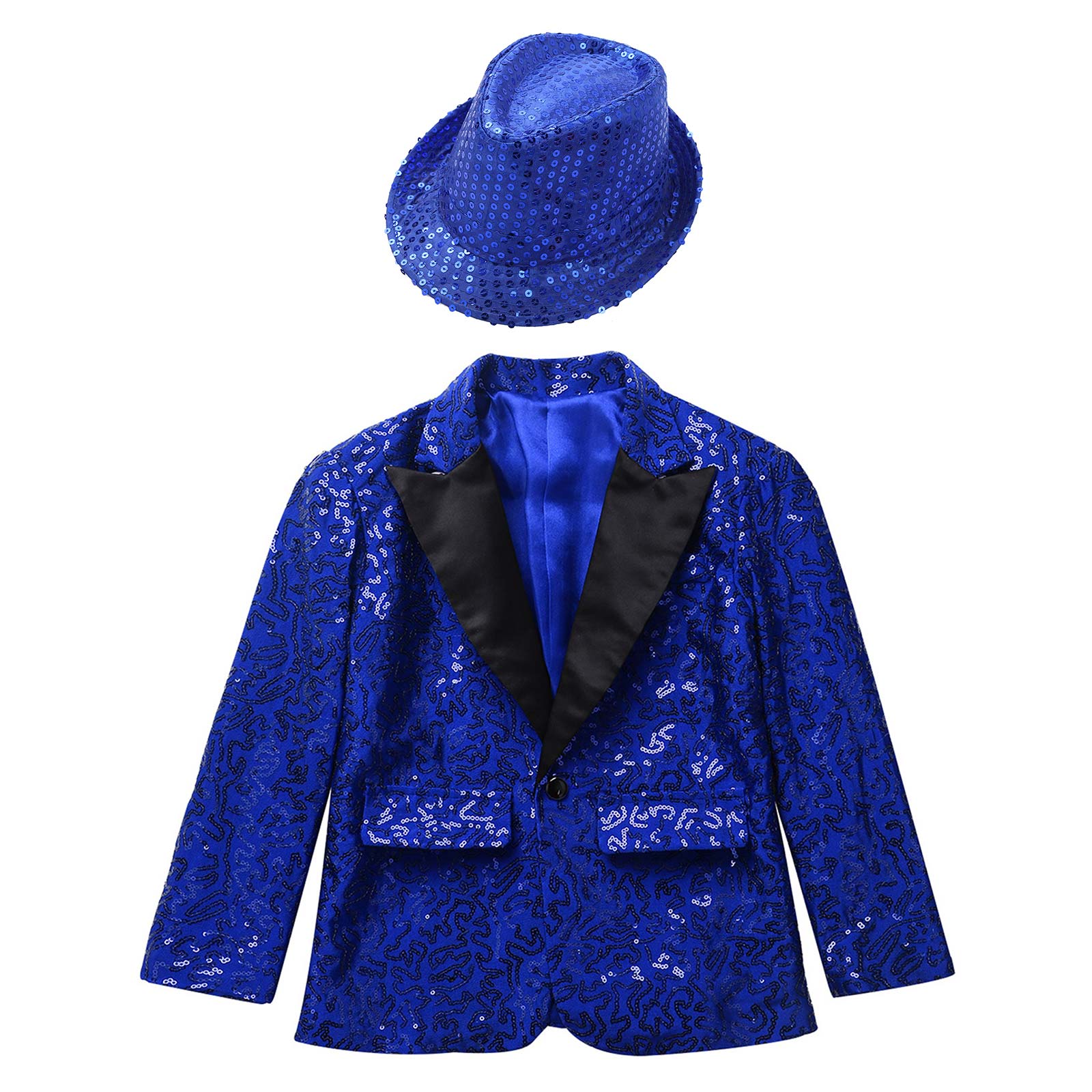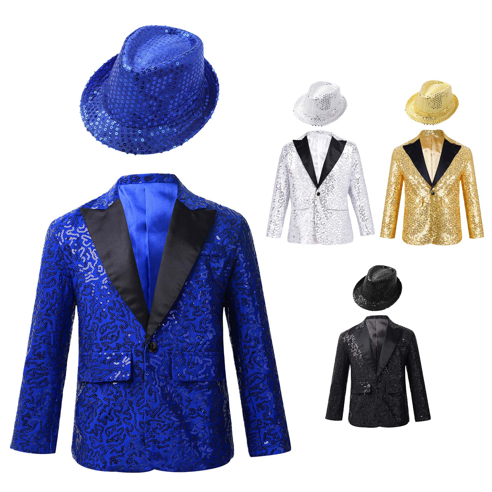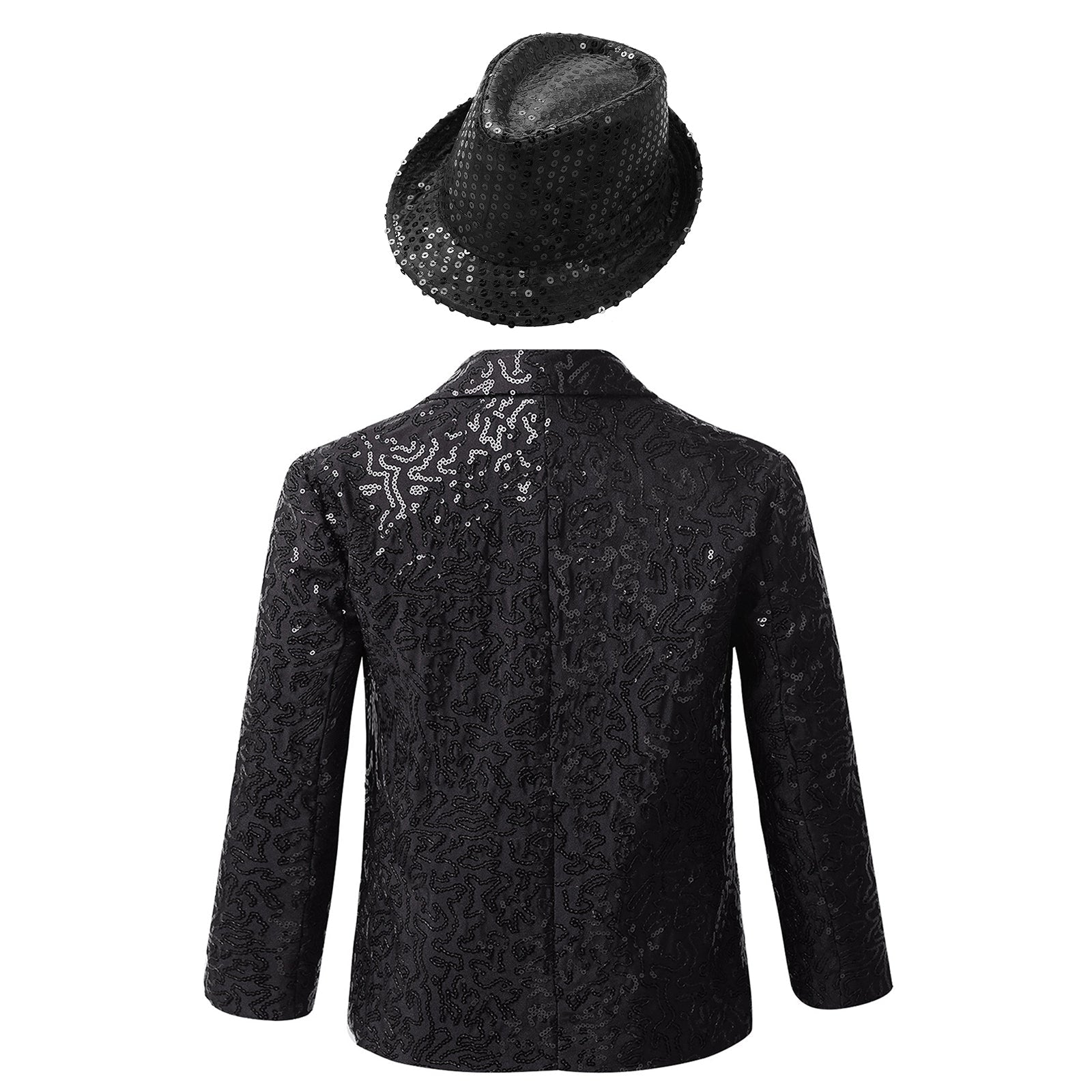 Boys Sequin Dance Tuxedo Jacket Suit & Fedora Hat (Age 6-16 YRS)