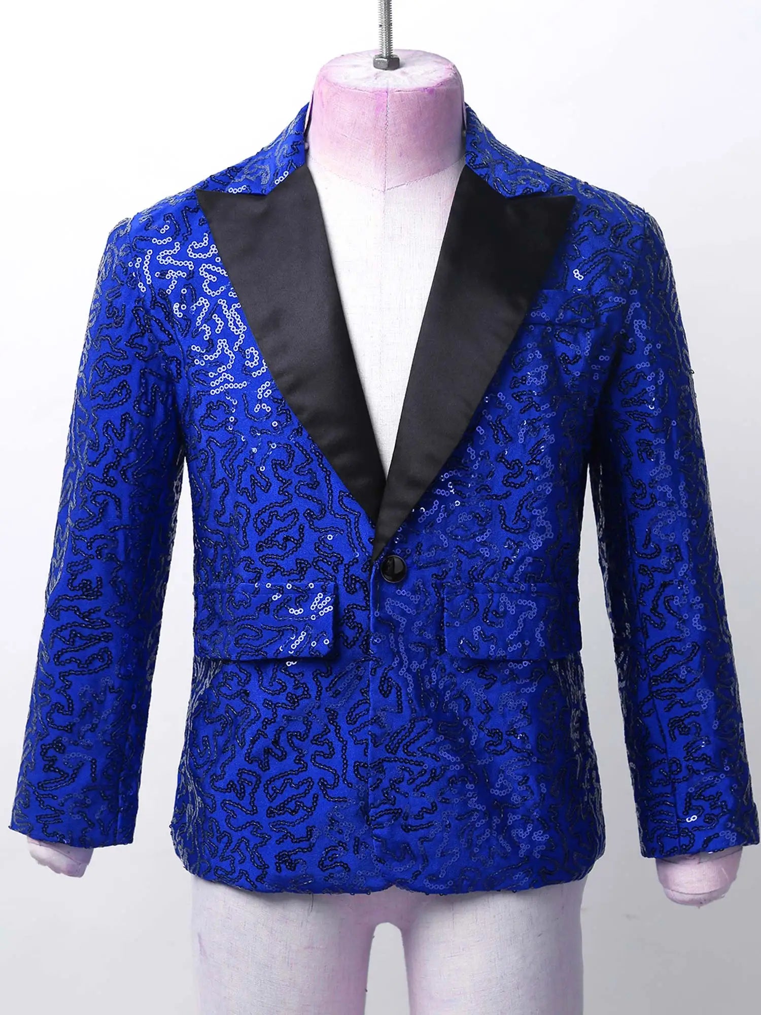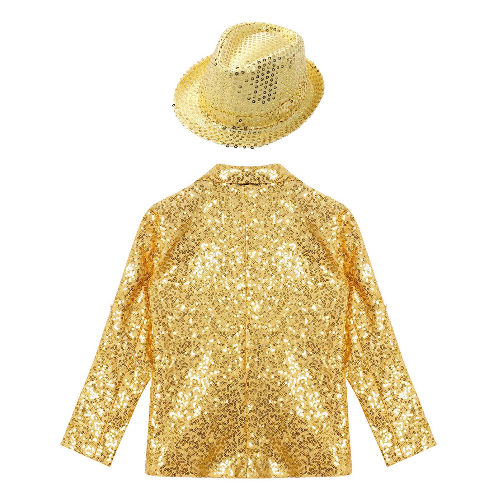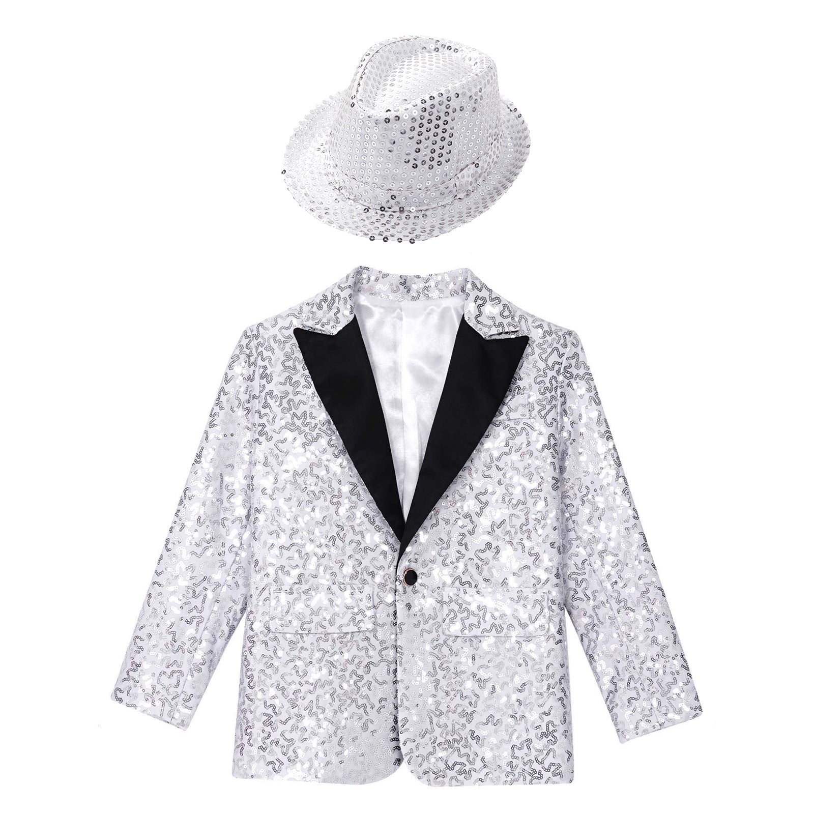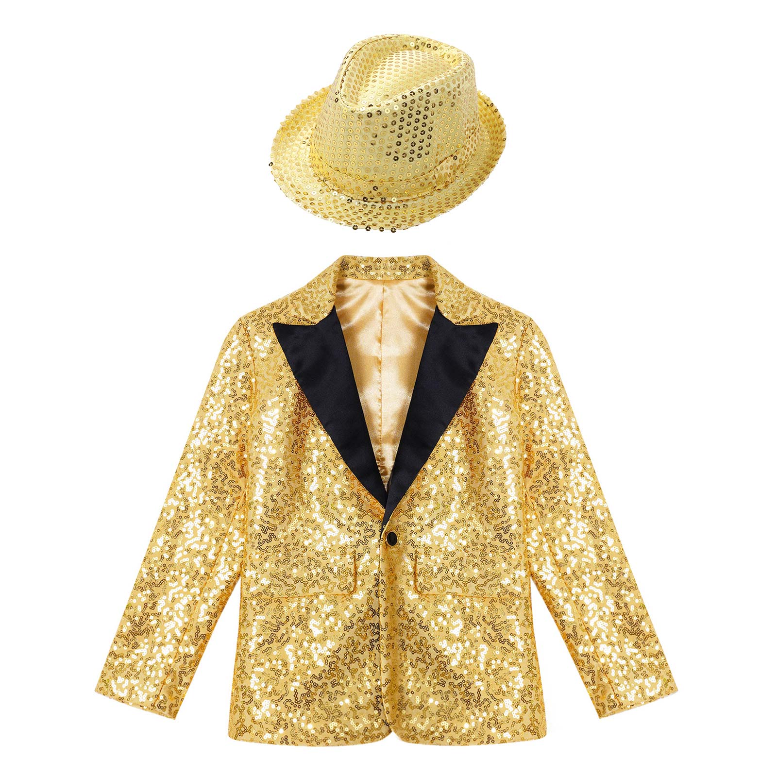 Boys Sequin Dance Tuxedo Jacket Suit & Fedora Hat (Age 6-16 YRS)