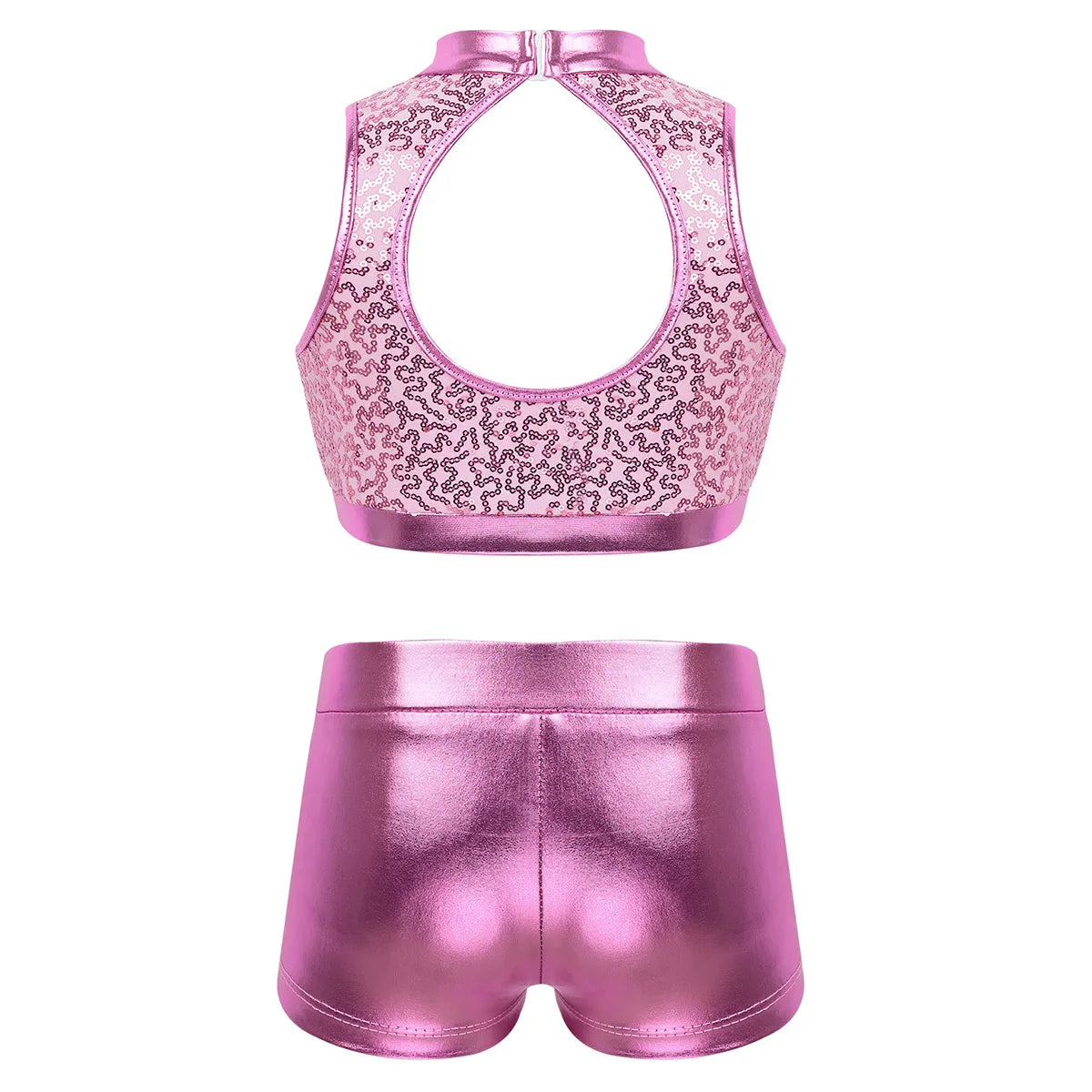 Girls Dance Costume Sequin Crop Top & Shorts Set (Age 6-12 YRS)