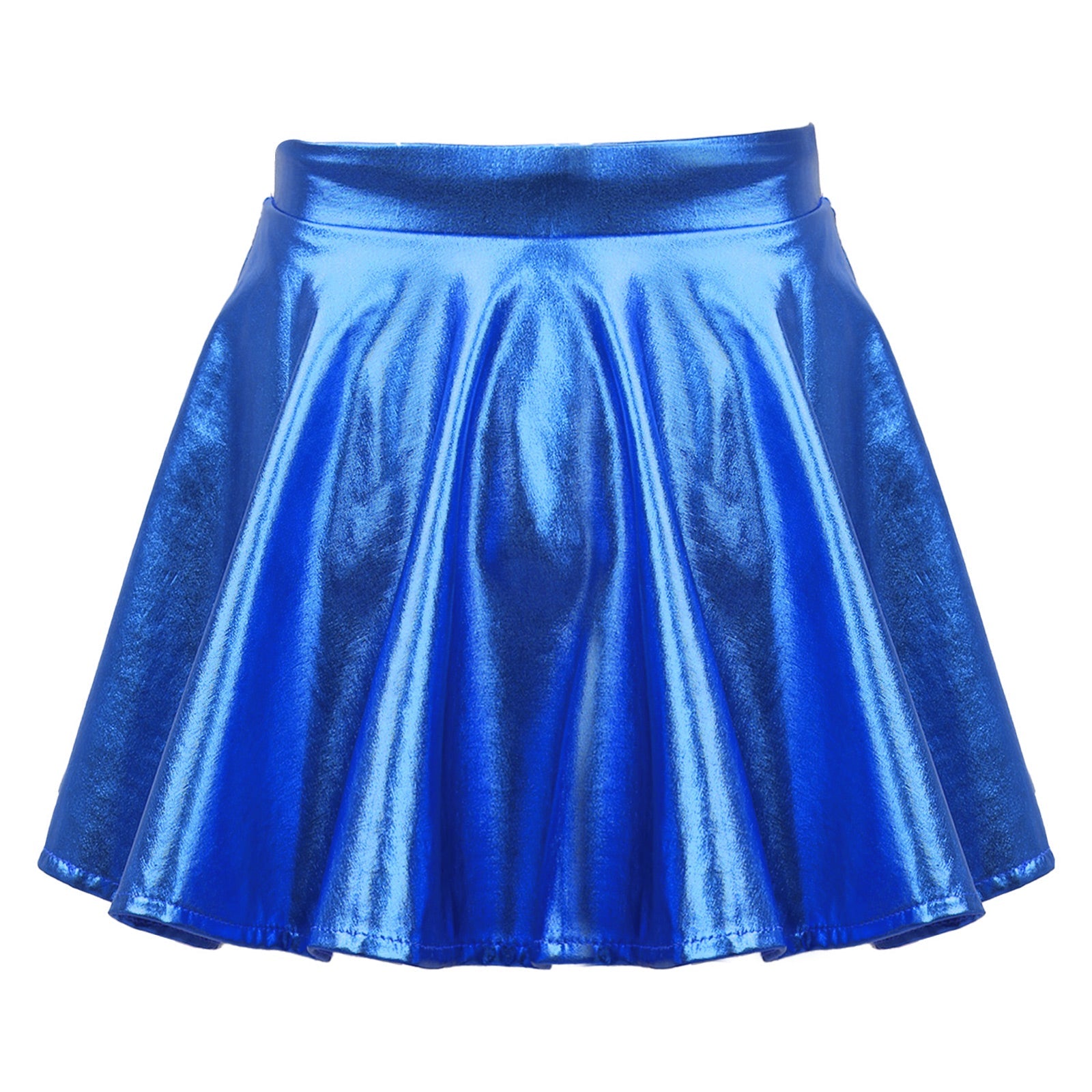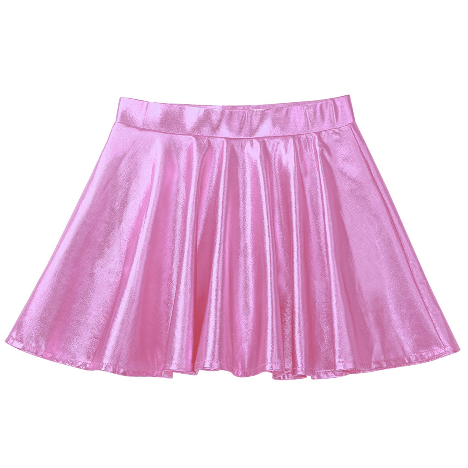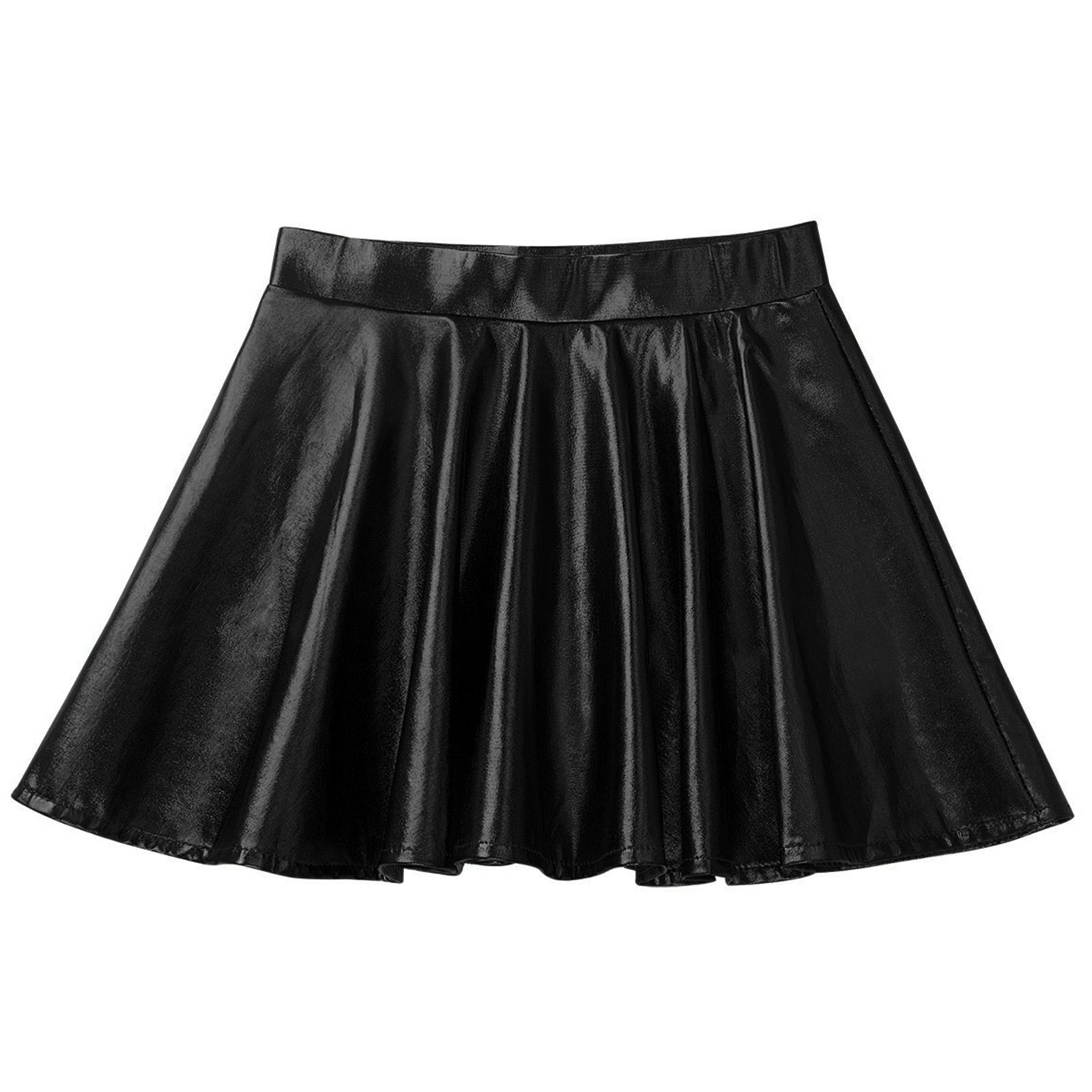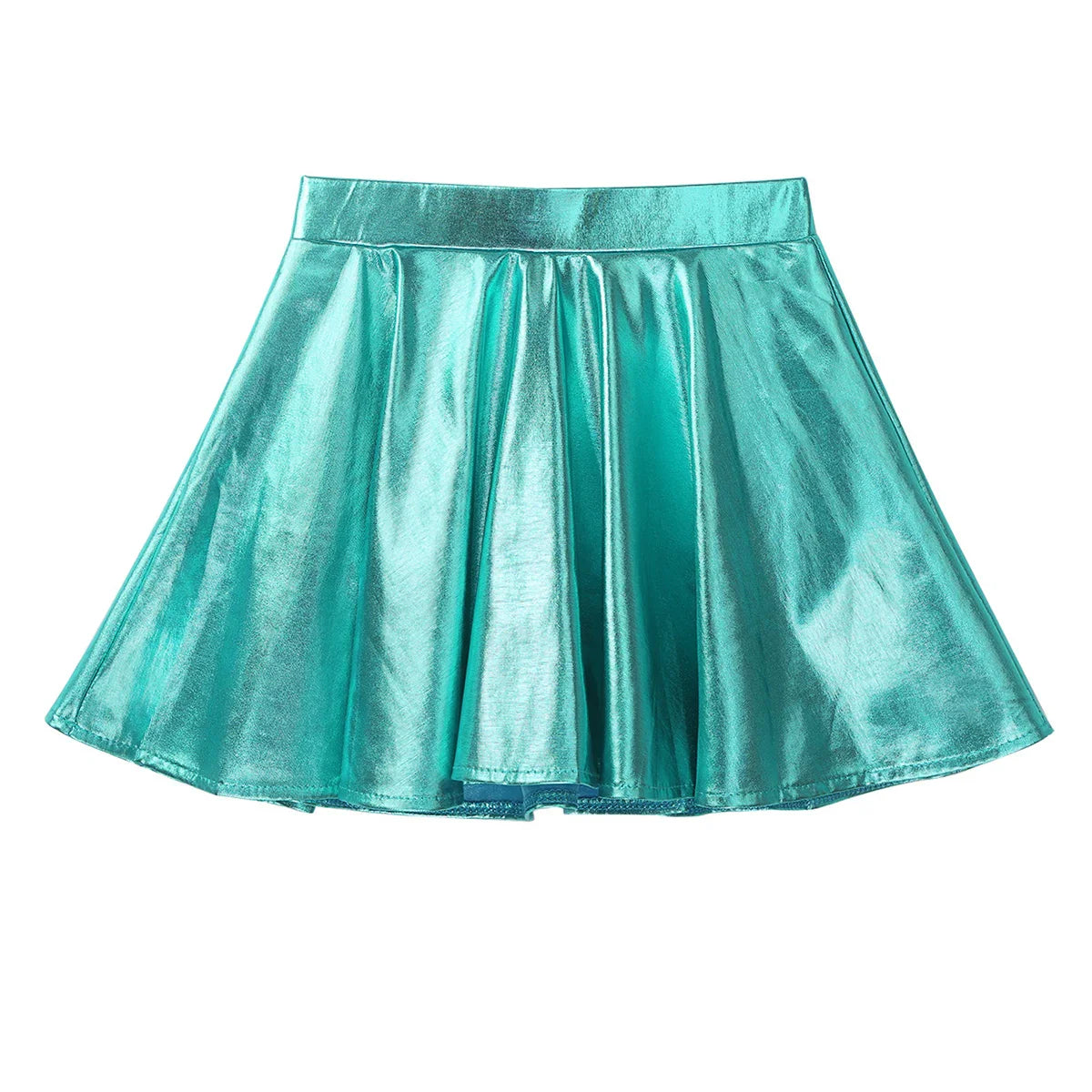 Girls Glossy Metallic Flared Pleated A-Line Miniskirt (Age 6-12 YRS)