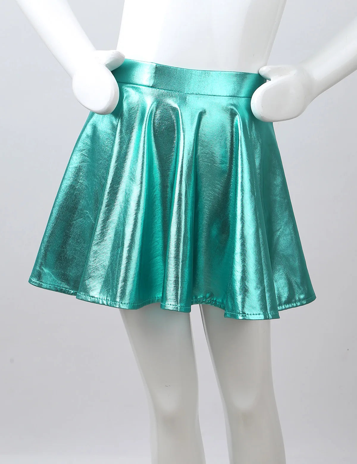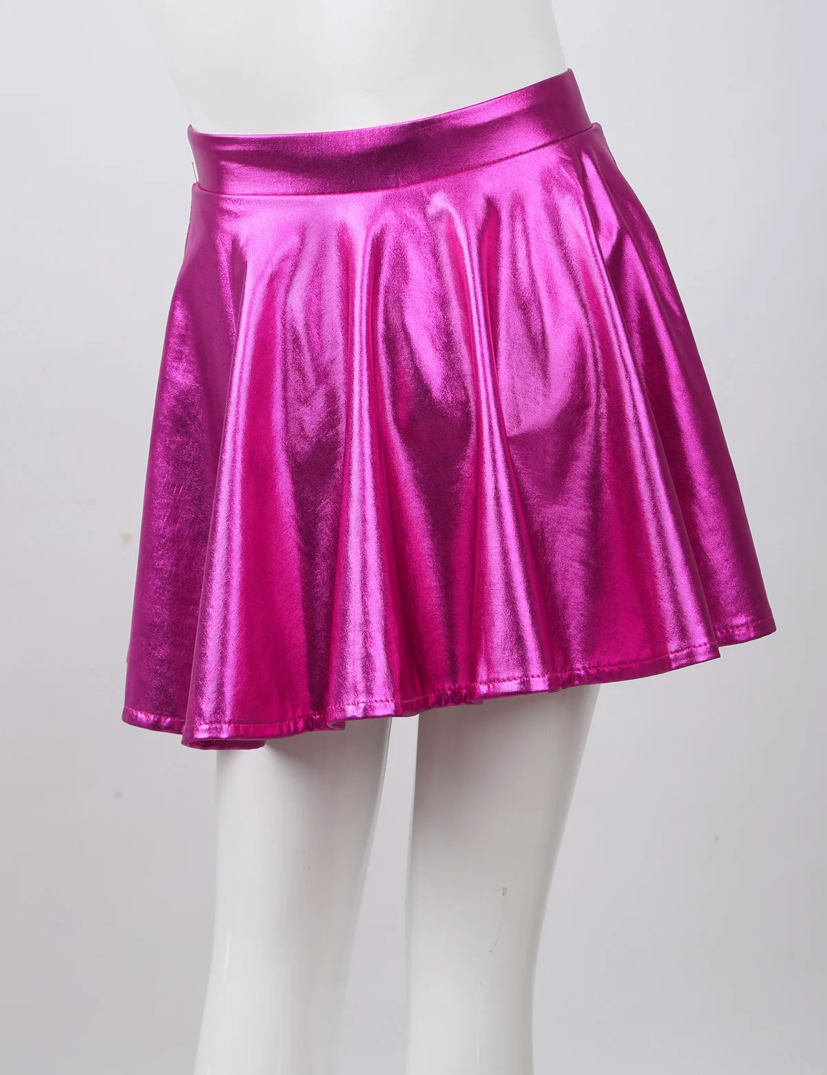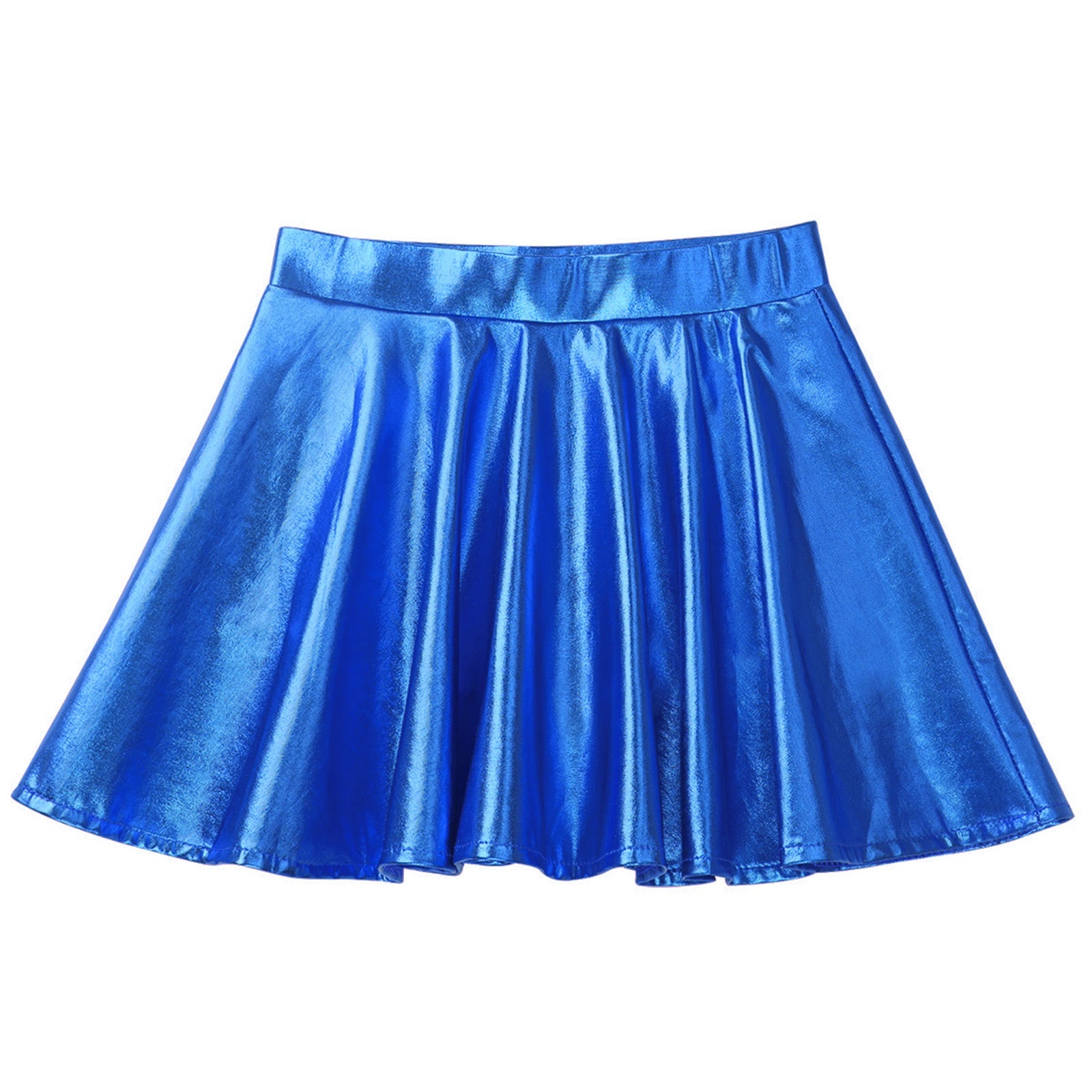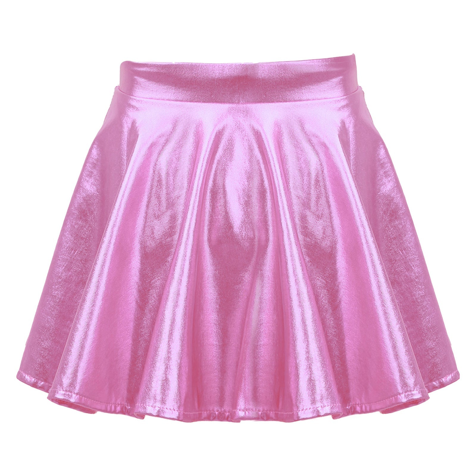 Girls Glossy Metallic Flared Pleated A-Line Miniskirt (Age 6-12 YRS)