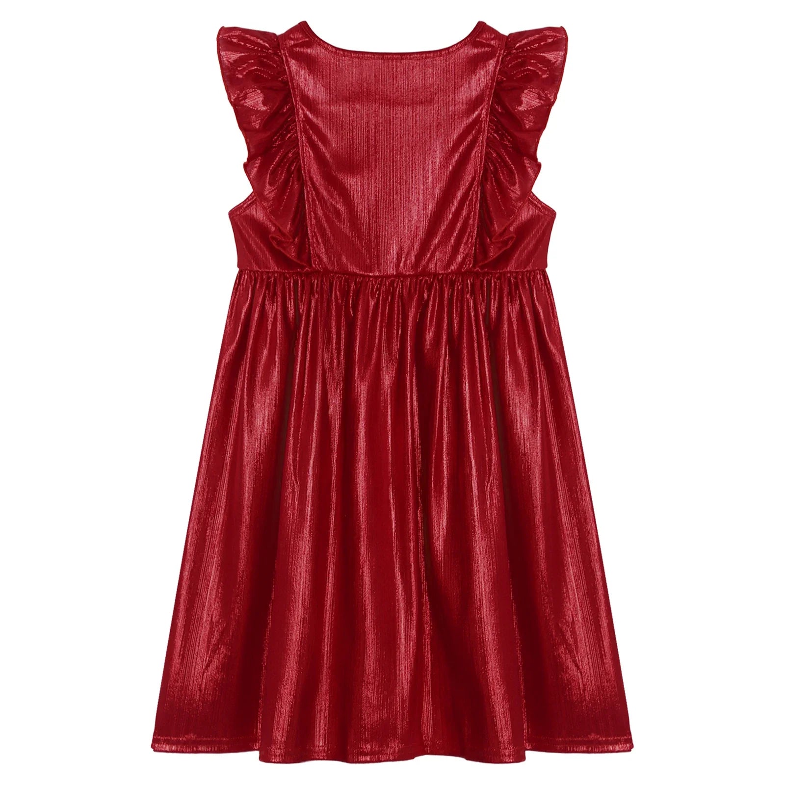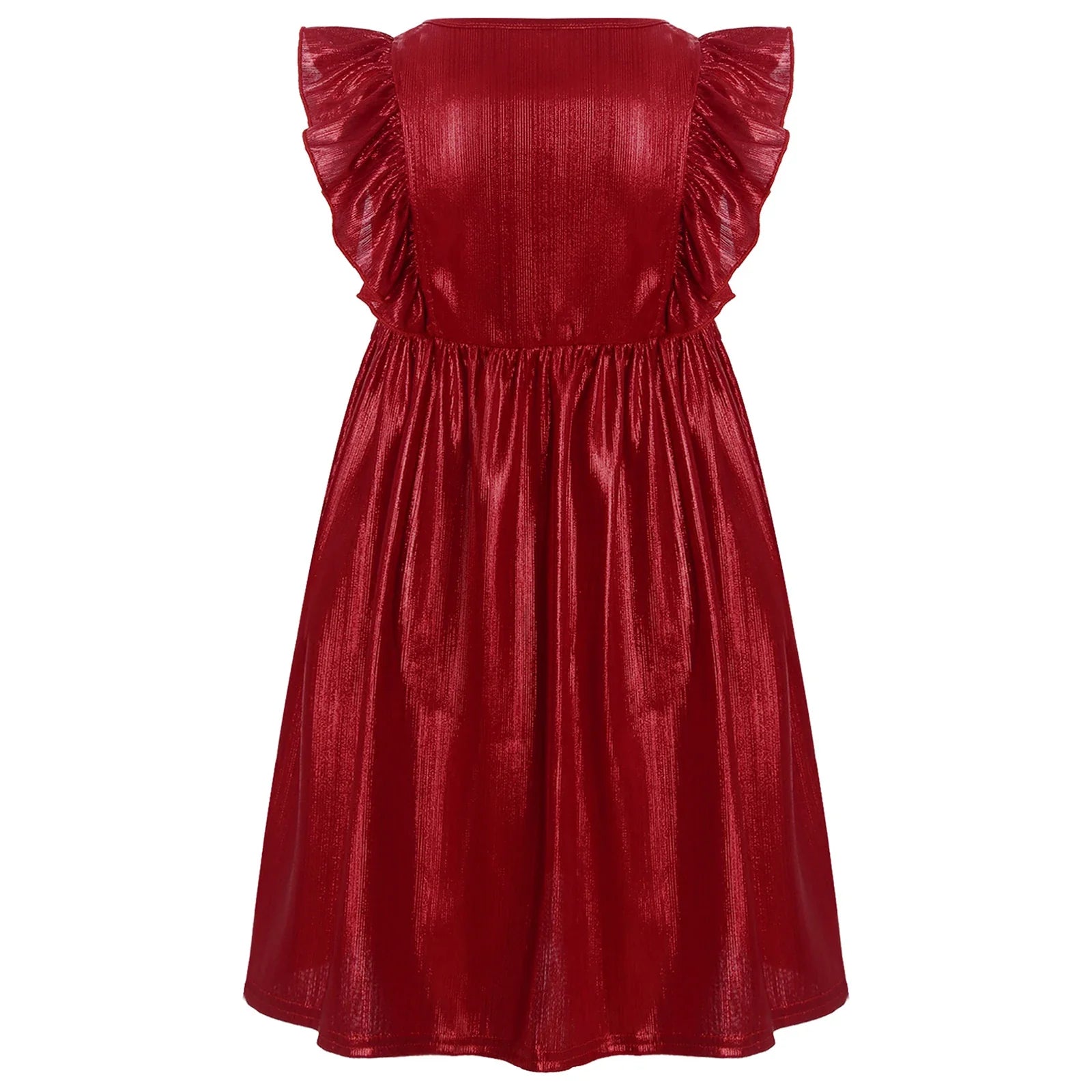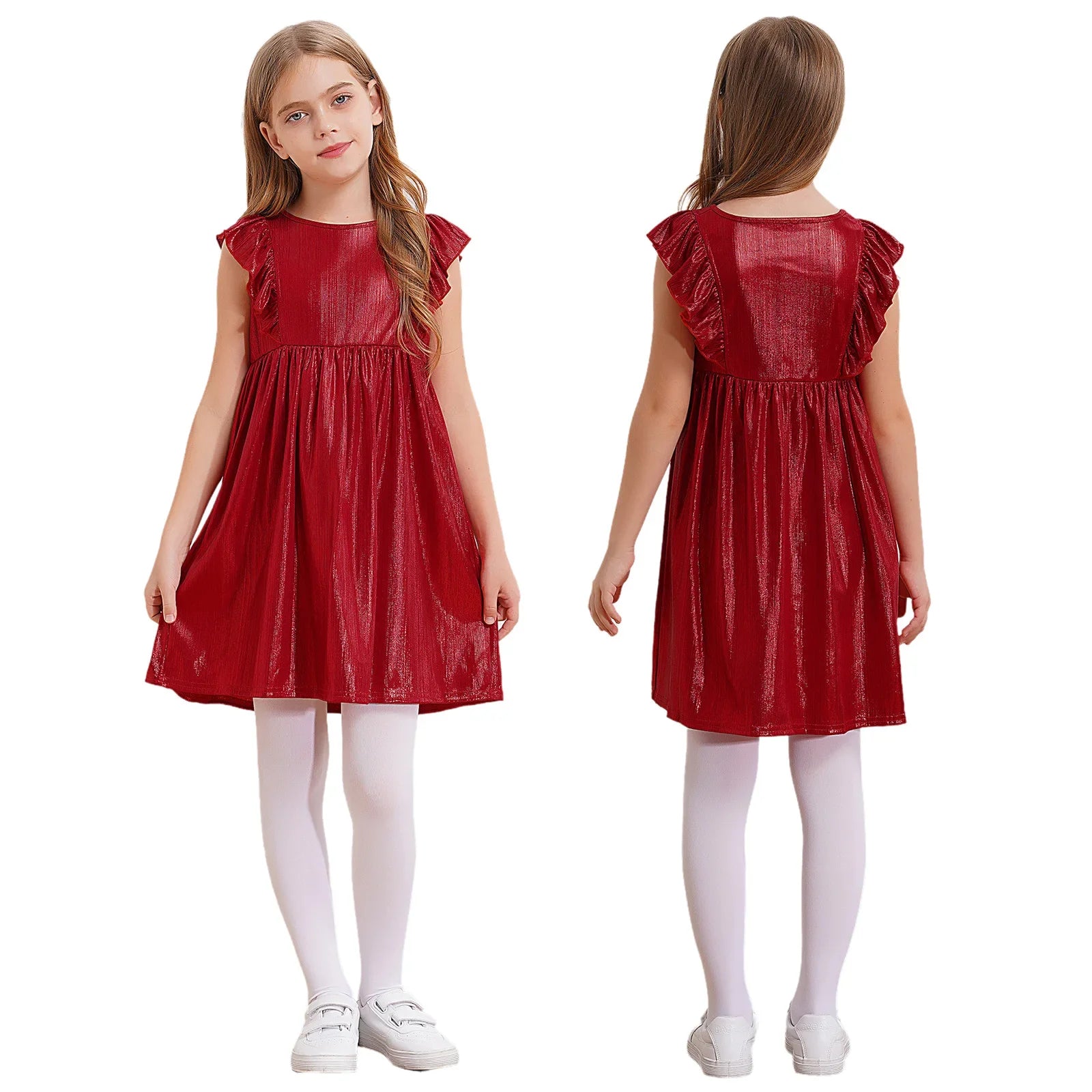 Elevate your child's wardrobe with this metallic A-line dress, perfect for any occasion! Made with high-quality, wrinkle-resistant fabric that offers a beautiful shine and comfortable fit. The ruffle details add an adorable touch, while the breathable and soft material ensures all-day comfort. The size table provides guidance for age ranges, but hand washing is recommended for best care. Perfect for birthday parties, ceremonies, family gatherings, and more.