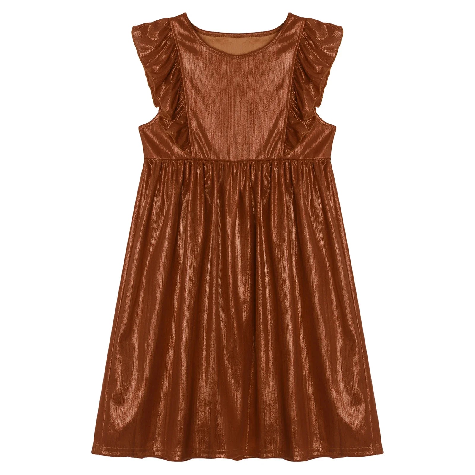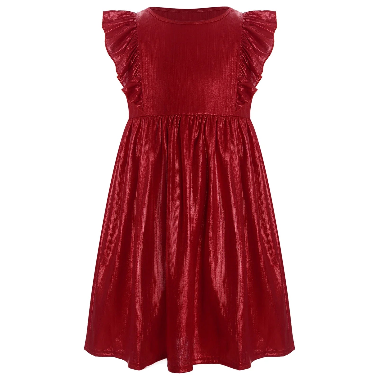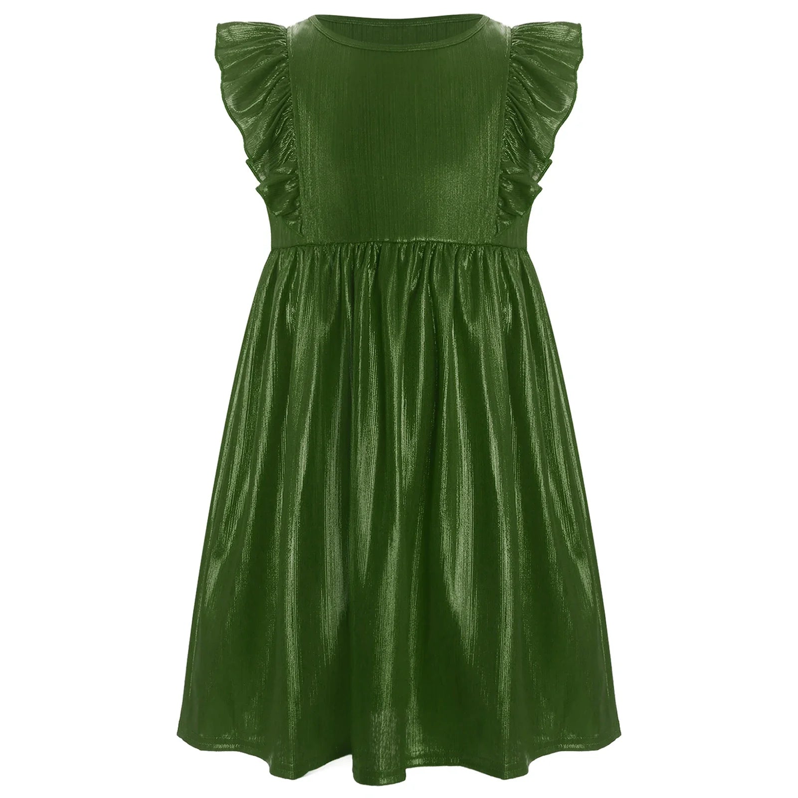 Girls Metallic Sleeveless Ruffles A-Line Dress (Age 24M-10YRS)