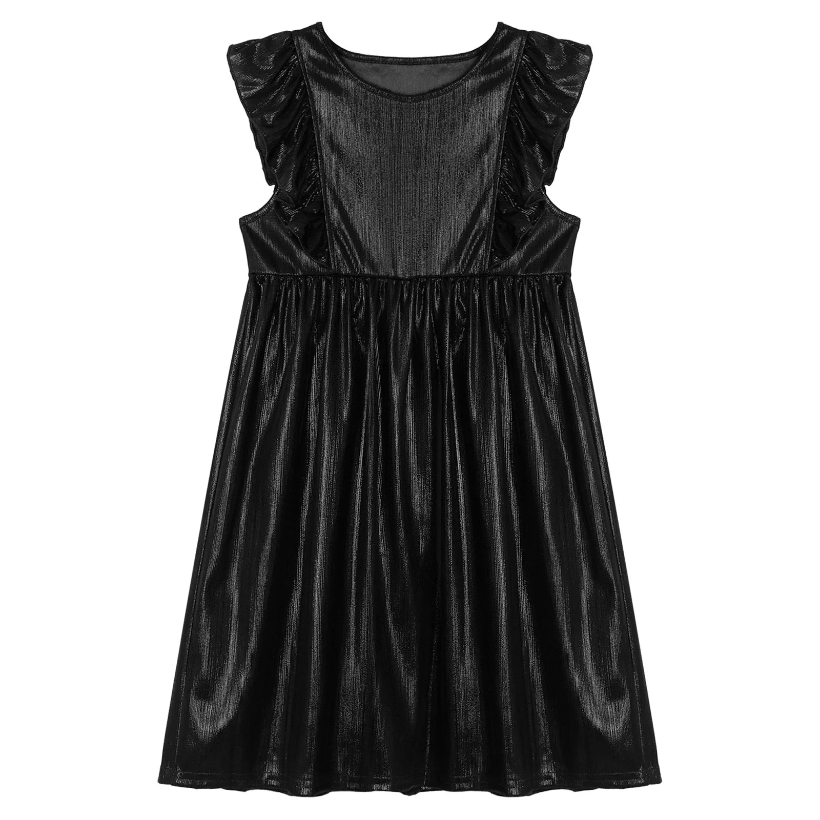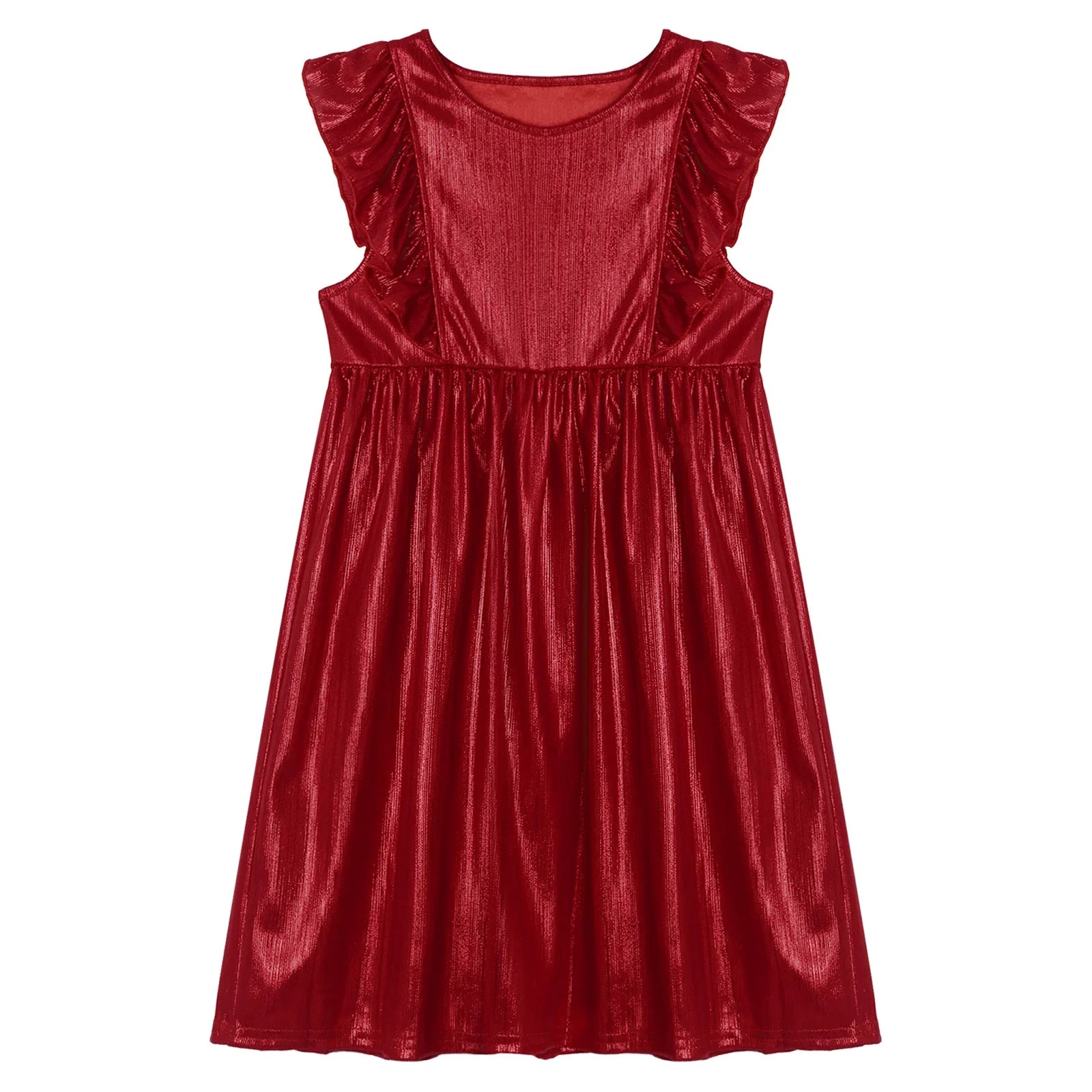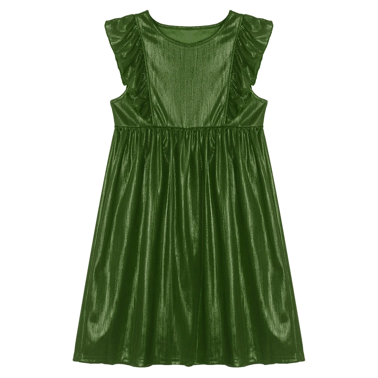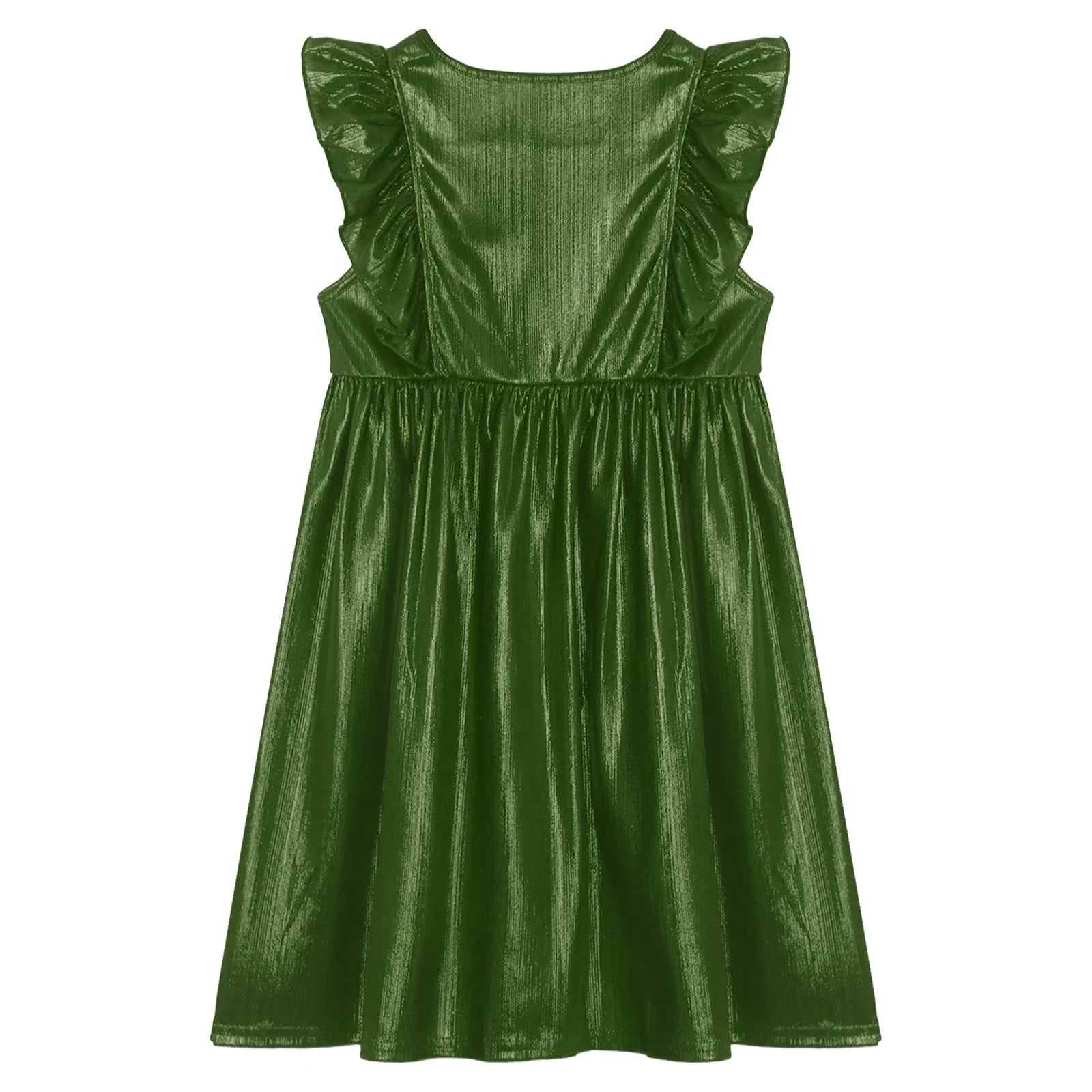Girls Metallic Sleeveless Ruffles A-Line Dress (Age 24M-10YRS)